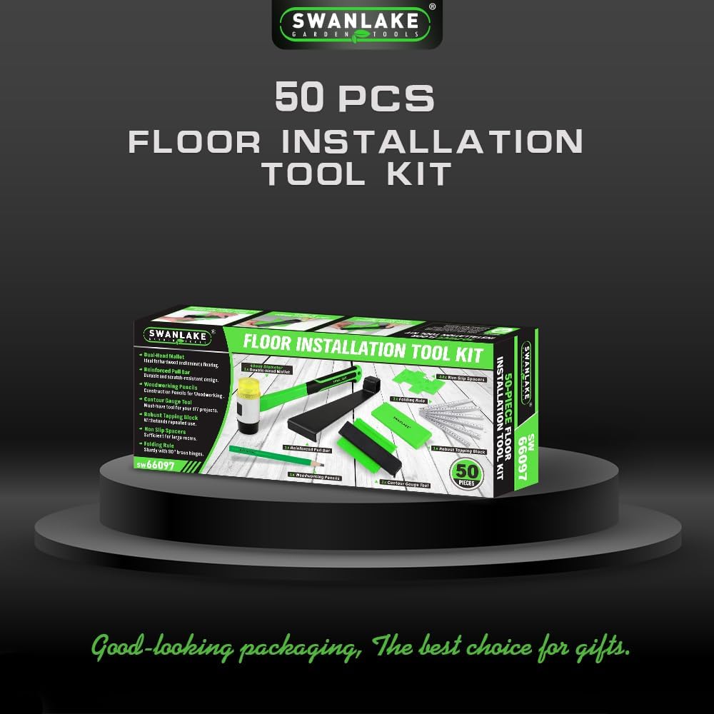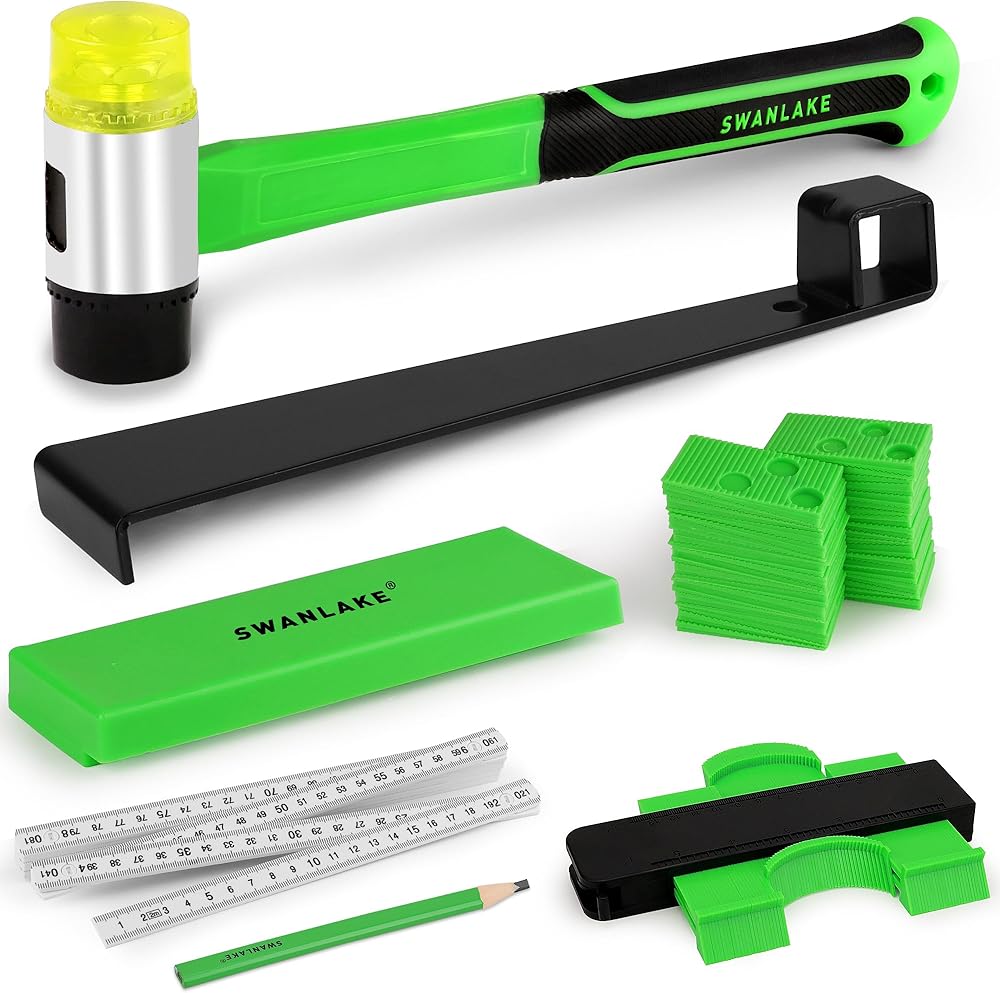 SWANLAKE 50-Piece Laminate Flooring Tools | Laminate Wood Flooring Installation Kit with 44 Spacers | Fiberglass Handle Mallet | Heavy Duty Pull Bar and Tapping Block | contour gauge.