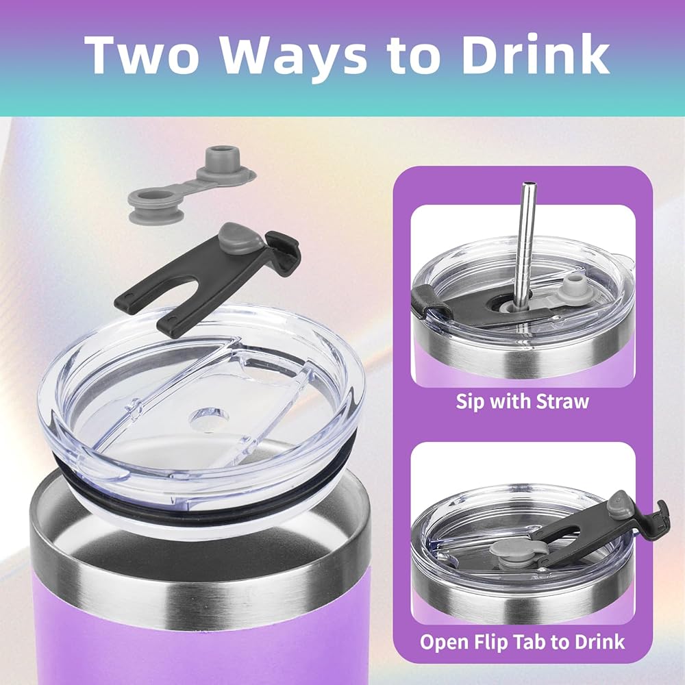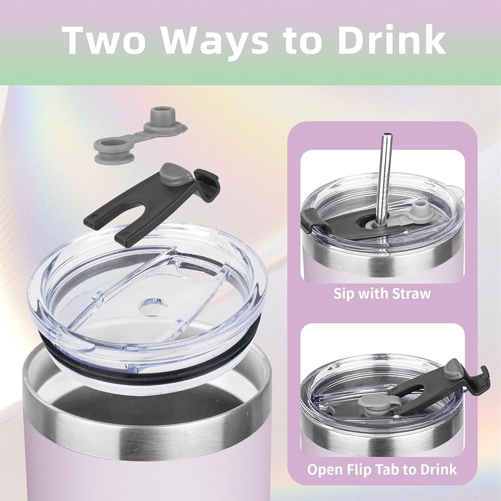 💝【تصميم أغطية مانعة للتسرب】: تم تصميم الأكواب المصنوعة من الفولاذ المقاوم للصدأ بغطاء خالٍ من البيسفينول A بفتحة لسهولة استخدام المصاصة ويمكن أيضًا تغطية الفتحة الموجودة في فم الكوب لمنع انسكاب السائل وعدم رشه على الملابس. الحلقة المطاطية المصنوعة من السيليكون الأسود توفر إغلاقًا أفضل.