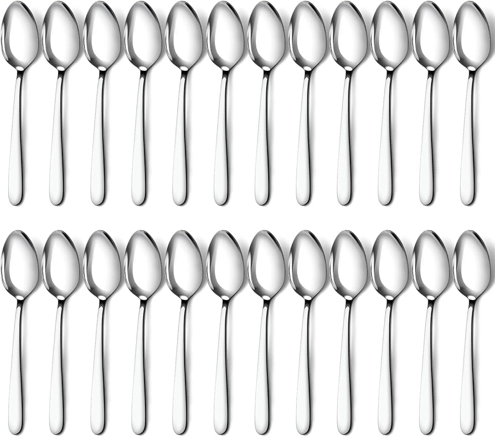 24 قطعة من ملاعق العشاء من Pleafind، ملاعق فضية مقاس 7.4 بوصة، مجموعة ملاعق من الفولاذ المقاوم للصدأ، ملاعق فضية، ملاعق فضية تستخدم للمنزل، المطبخ، المطعم، آمنة للاستخدام في غسالة الأطباق، مرآة مصقولة