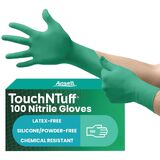 قفاز Ansell TouchNTuff 92-600 خفيف الوزن من النتريل مع أساور مطرزة، مقاوم للمواد الكيميائية/الرذاذ، خالٍ من المسحوق، سمك 4.7 مل، طول 240 مم، مقاس 9، أخضر (صندوق مكون من 100)