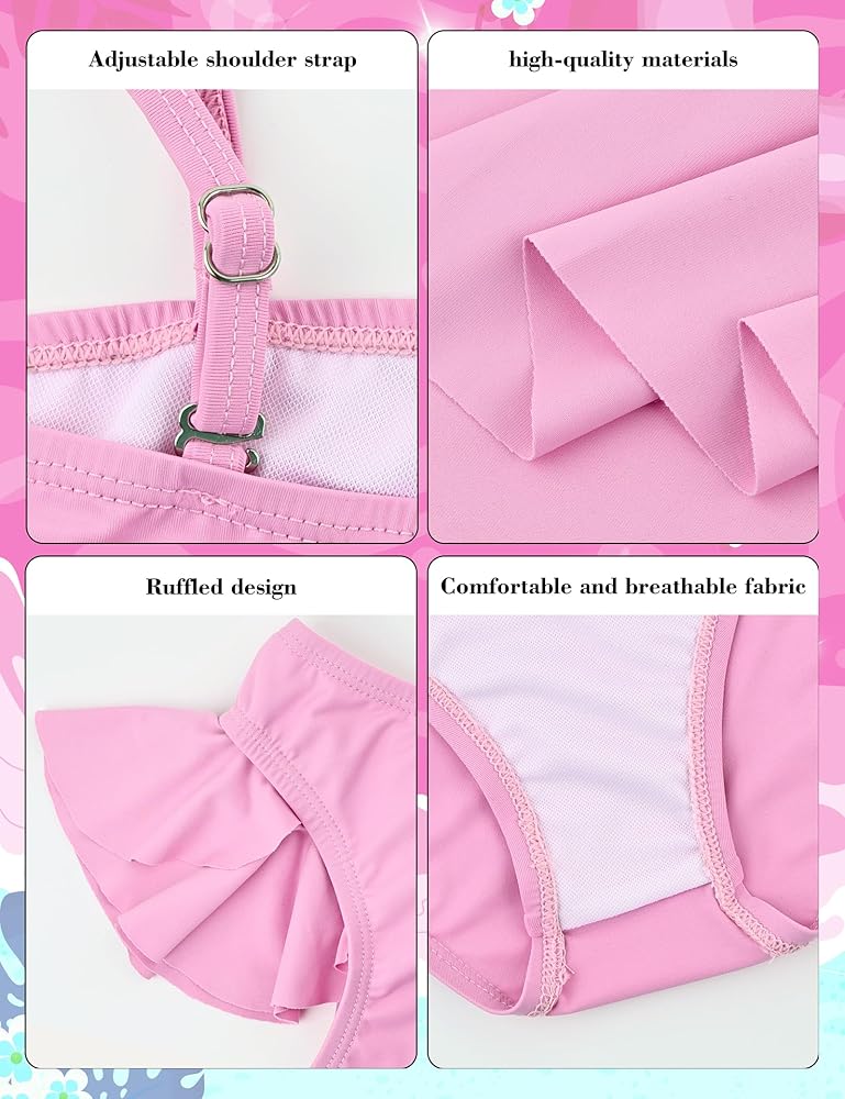 حماية موثوقة: توفر بدلات السباحة للفتيات لدينا حماية موثوقة، بينما توفر الأجزاء السفلية المطابقة تغطية كاملة وحزام خصر آمن، مما يضمن بقاء طفلك آمنًا تحت الشمس.