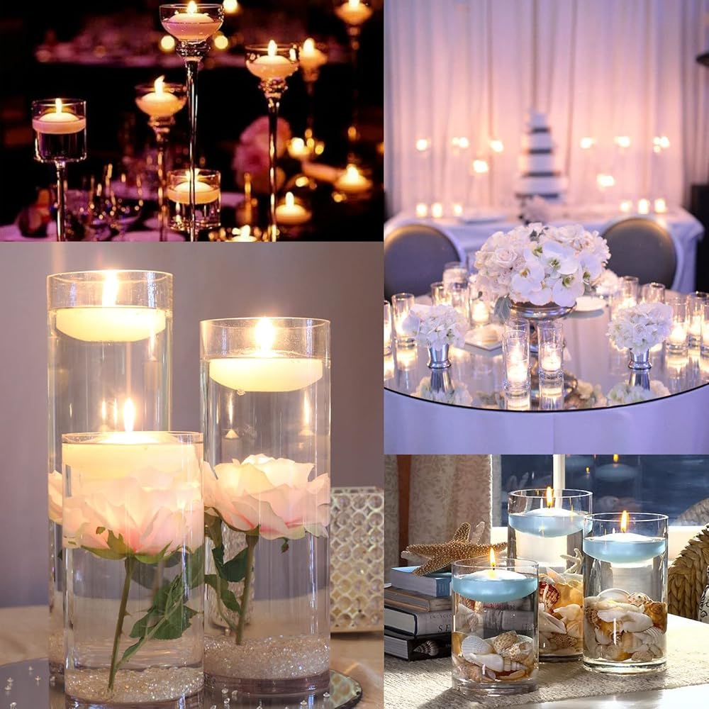 Delicate Floating Tealights Decor: our romantic, warm floating candles are designed for you to decorate your own spot; Set up various different glass vases and arrange them in the center of the table and decorate each vase with a flower at the bottom; With Warm light, easily for you to create romantic atmosphere.