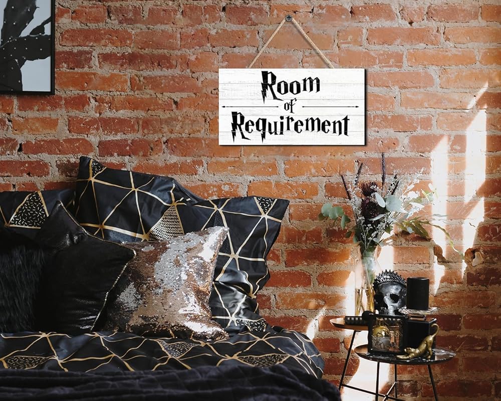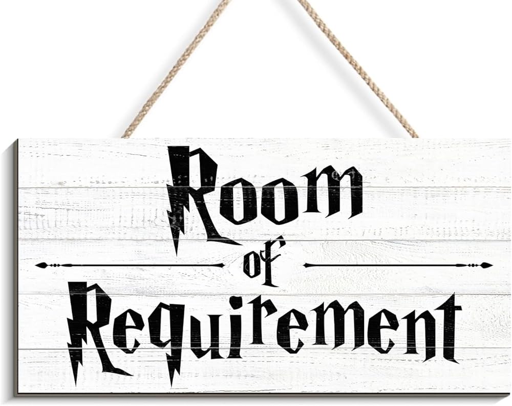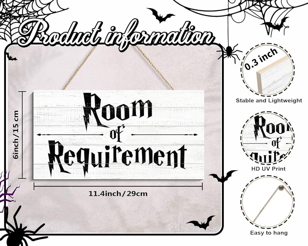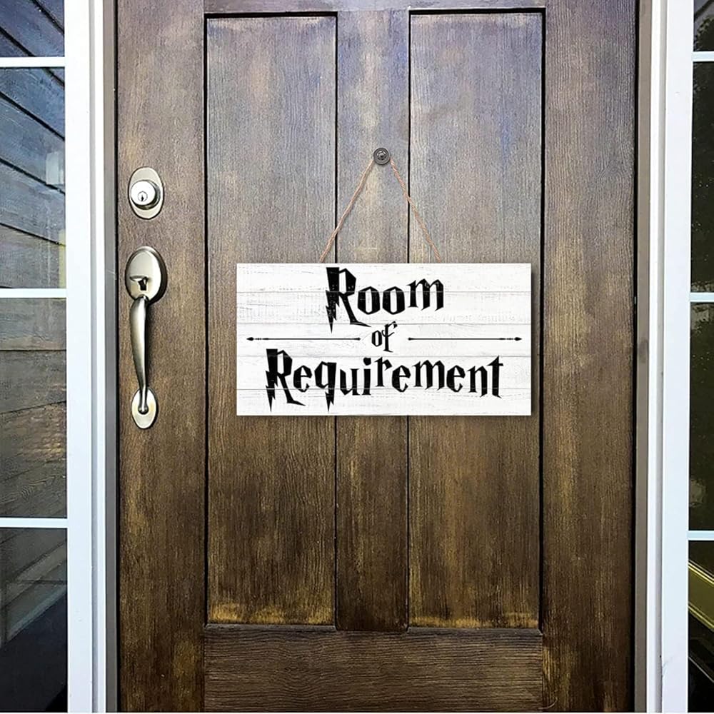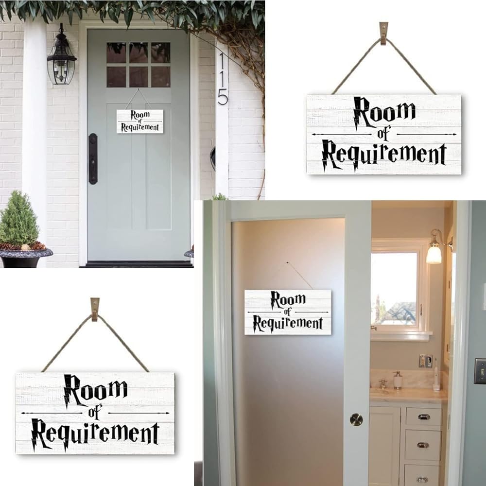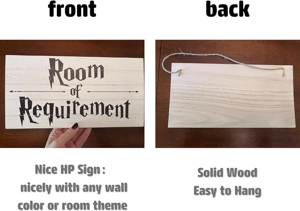 PREMIUM MATERIALS - Wooden sign measures 12" x 6" x 0.3". Perfect size for catching your eyes while not taking up too much space.This Room of Requirement Sign is made of real wood instead of cheap MDF board, very durable and not easy to damage.