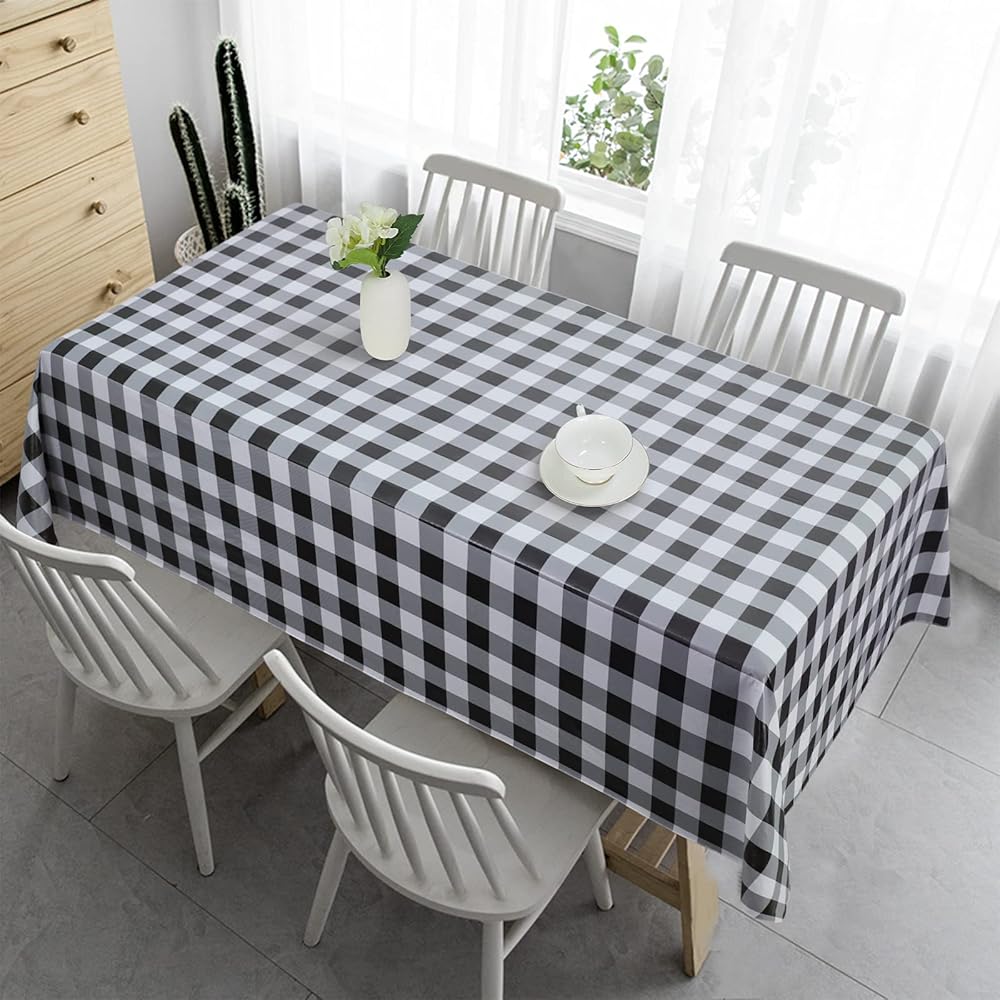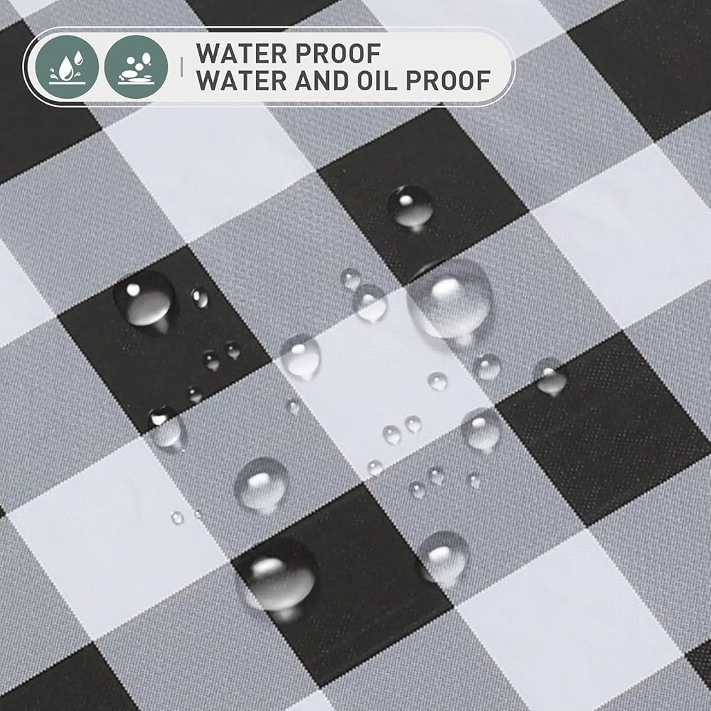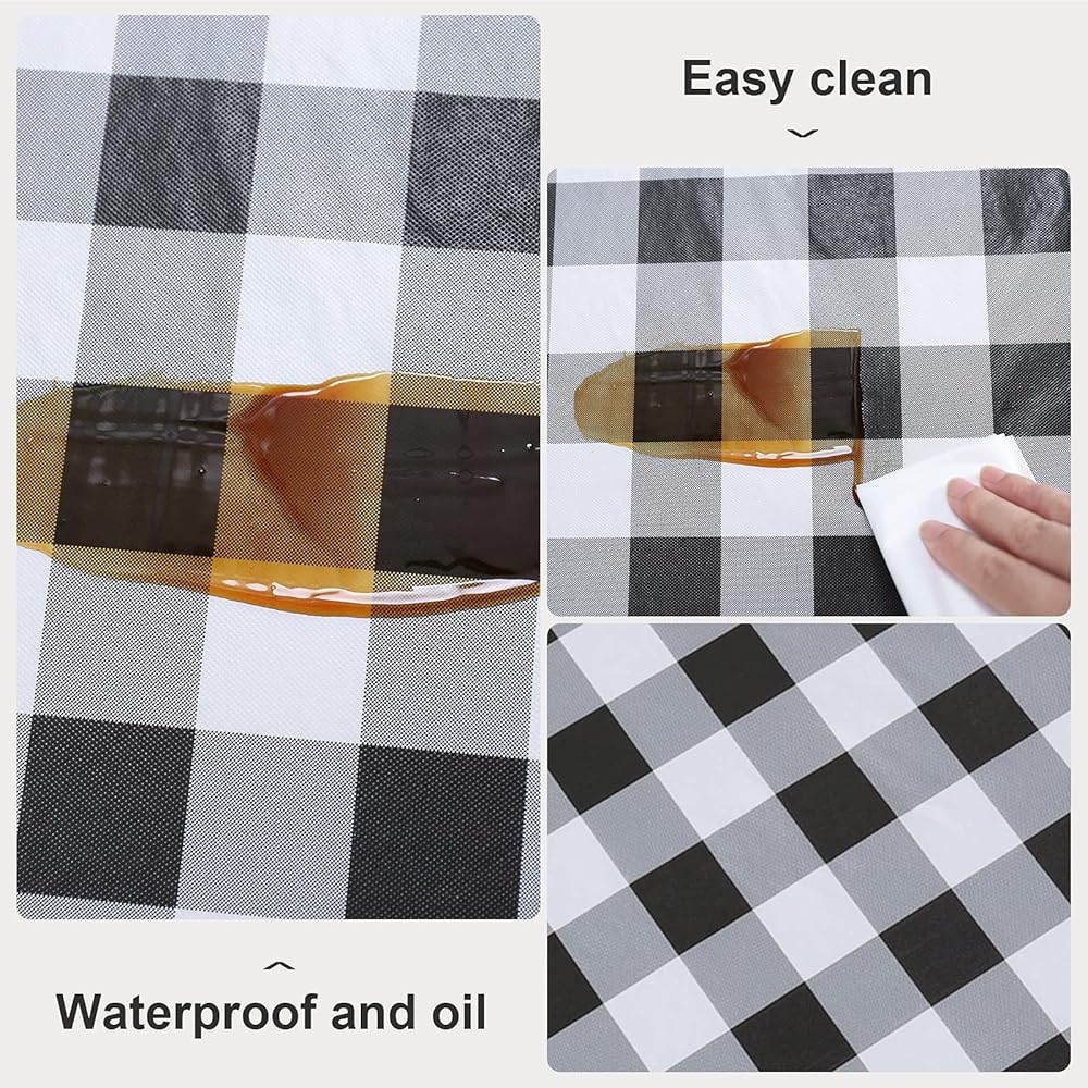 مقاوم للانسكاب والبقع: غطاء مفرش المائدة PVC الخالي من التجاعيد مصنوع من مادة الفينيل المقاومة للماء بنسبة 100%. إنه مقاوم للزيوت والبقع والحرارة ومضاد للخدش ولا يسبب أي تسرب، مما يجعله واقي غطاء الطاولة المثالي لطاولتك.
