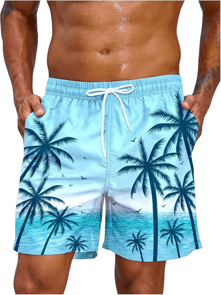 • Feature: Tropical printed, drawstring waist, elastic waist, straight leg, loose, beach shorts