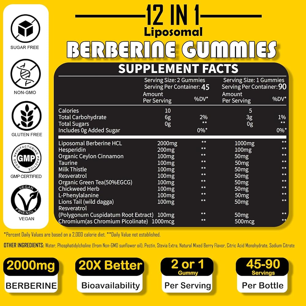 • 🌱 【مجموعة قوية 12 في 1 】تركيبة نقية ومتقدمة: Cymixy8 Liposomal Berberine HCL يتم حصاده بريًا من البربريس أريستاتا المزروع في البرية، ومعبأ بـ 3100 مجم قوي لكل وجبة. مزيج من Liposomal Berberine HCL، وCeylon Cinnamon، وHesperidin، وTaurine، وMilk Thistle، وResveratrol، والشاي الأخضر، وChickweed Herb، وL-Phenylalanine، وLions Tail، وChromium يخلق مزيجًا قويًا من المكونات الطبيعية المشهورة بفوائدها الصحية المتنوعة.
