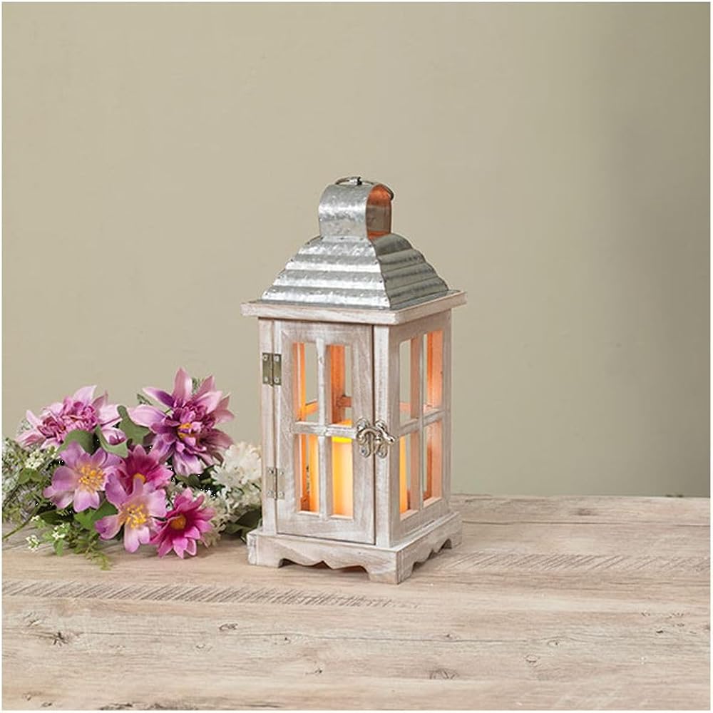 شركة جيرسون 11.4 بوصة ارتفاع B/O فانوس خشبي ومعدني مضاء مع شمعة LED ومؤقت