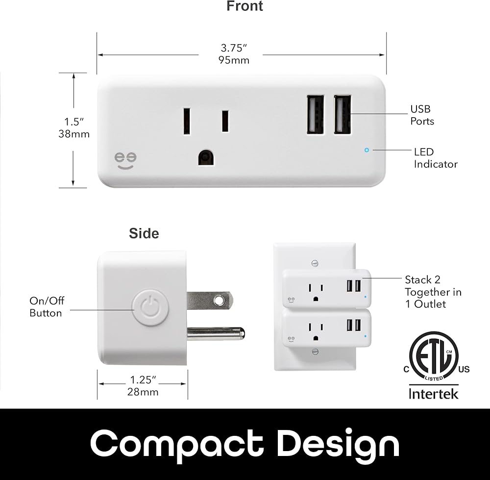التوافق: قابس مخرج Geeni Switch+Charge Wi-Fi متوافق فقط مع شبكات Wi-Fi 2.4 جيجا هرتز. التثبيت سهل. ما عليك سوى توصيل أجهزتك بمنفذك الذكي لبدء الاستخدام!