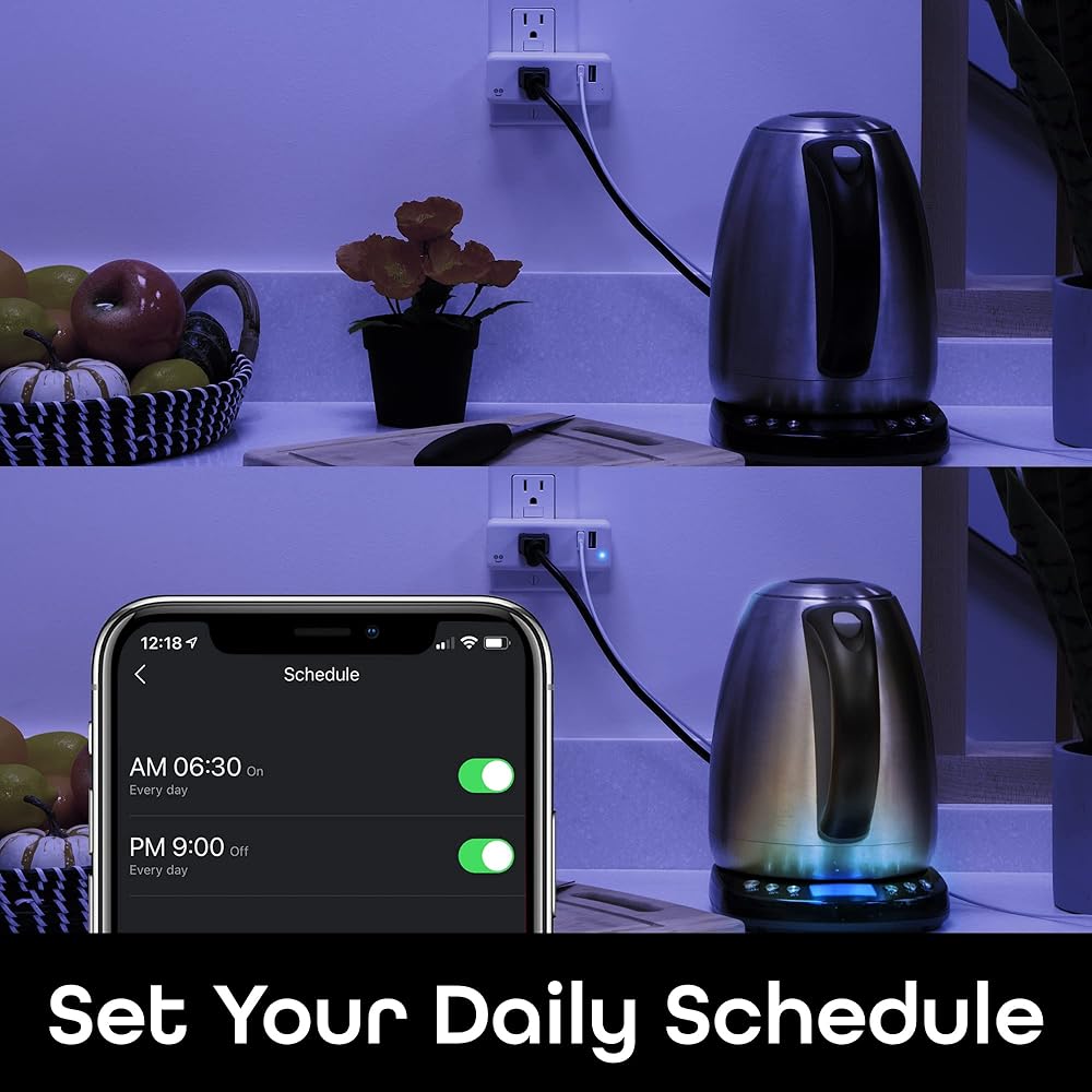 التحكم من أي مكان: باستخدام شبكة Wi-Fi المنزلية، يمكنك التحكم في المنفذ الخاص بك عن بعد من أي مكان. امنح كل منفذ اسمًا فريدًا واستخدمه بشكل منفصل. متعب جدا للحصول على ما يصل؟ اطلب من Alexa إطفاء مصابيح غرفة نومك عندما يحين وقت النوم.