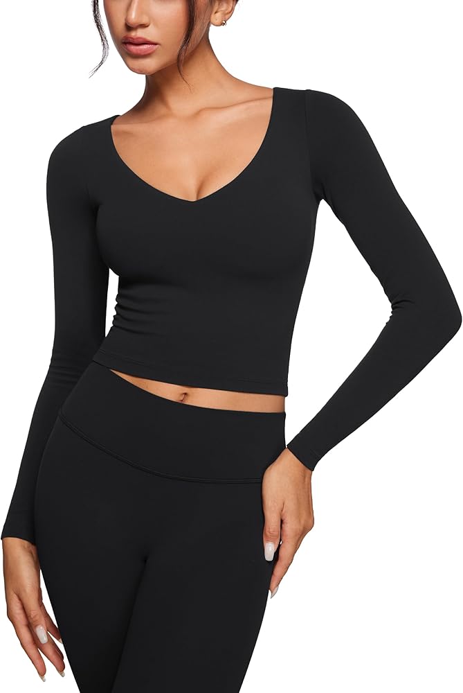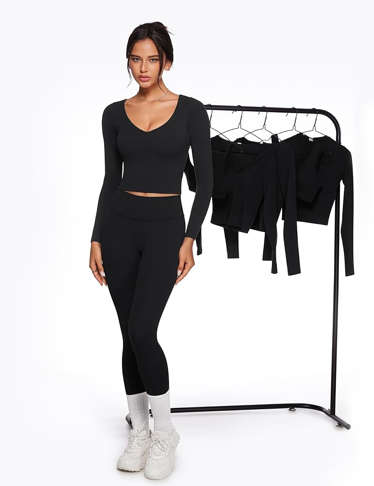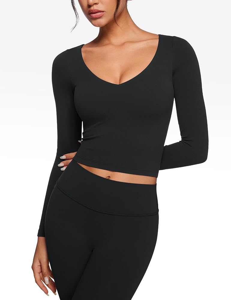 CloudLUXE collection features super softness and stretch. Hip-length long-sleeved tops complement high-waisted pants perfectly.Ideal for yoga, workout, fitness, and exercise.