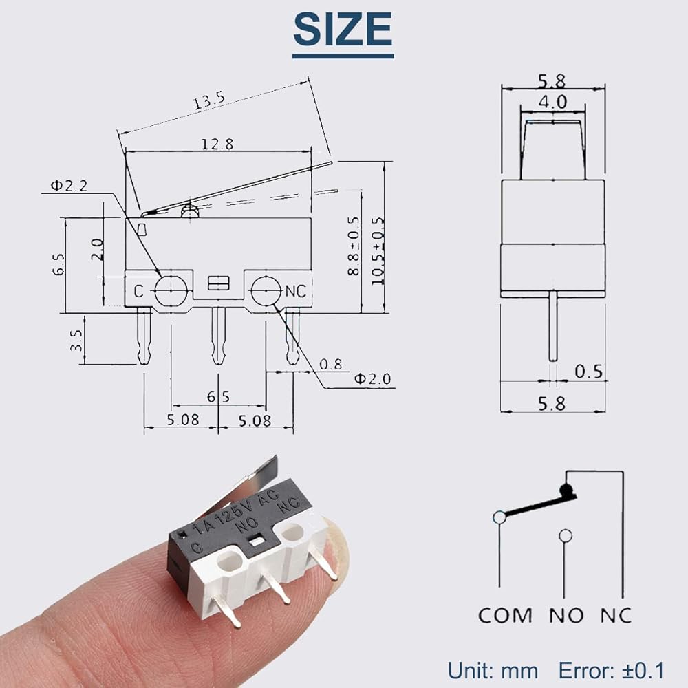 🔳[Product ]Name:Micro Limit Switch. the micro switch is a very sensitive small switch, Activation requires only a small amount of force. Actuator Action: Momentary, Actuator Type: Hinge Lever