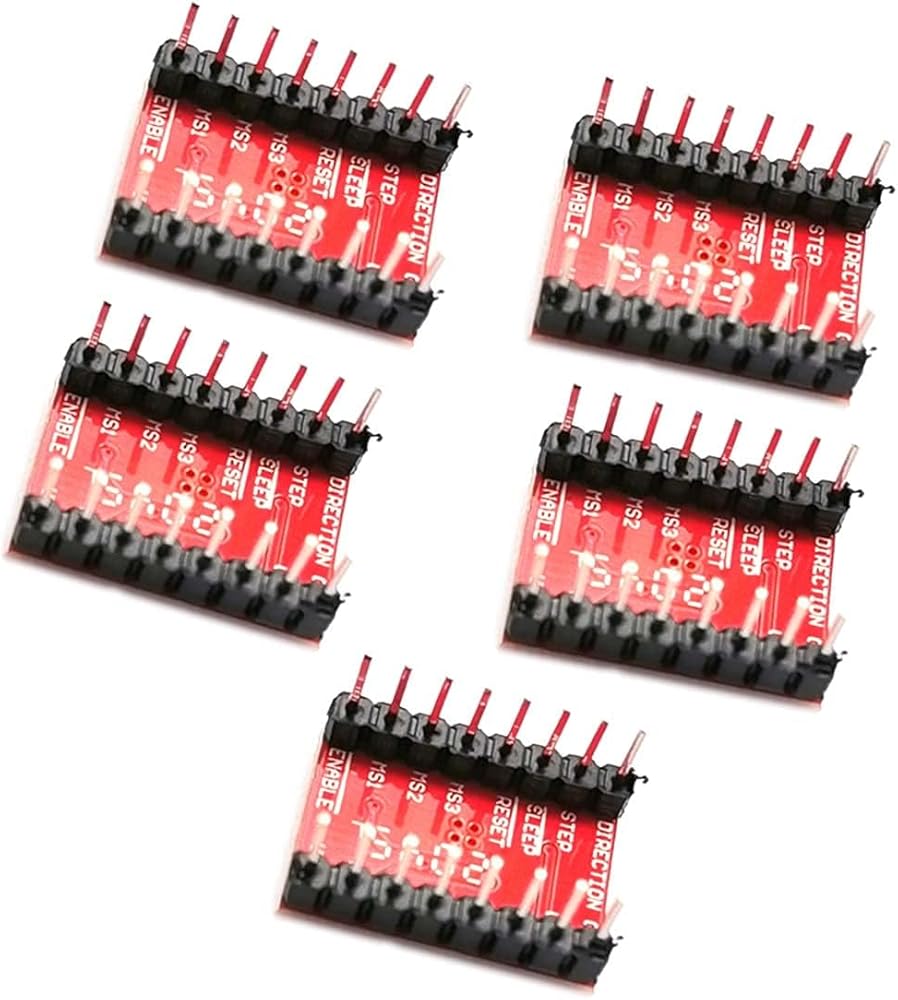 Enhance the performance of your 3D printer, CNC machine, or robotics project with the 5pcs A4988 Stepper Motor Driver Pololu StepStick Module Board. This versatile motor driver provides precise control over your stepper motors, ensuring smooth and accurate movement. With adjustable current control, you can easily set the maximum current output using the potentiometer, giving you flexibility in meeting the specific requirements of your application. The simple step and direction control interface makes it easy to integrate into your system, providing a seamless user experience. Featuring five different step resolutions, including full-step, half-step, quarter-step, eighth-step, and sixteenth-step, this stepper motor driver offers precision and fine-grained control. Whether you need high torque or resolution, this module can adapt to your needs. Safety is a top priority, and this motor driver incorporates several protective features. Thermal protection safeguards against overheating, ensuring the longevity of the driver and connected components. Under-voltage lockout prevents operation at low voltages, while the crossover-current protection prevents excessive current that could damage the system. Additionally, the ground fault protection ensures safe operation. Thanks to its intelligent chopping control, this module automatically selects the optimal current decay mode, whether it's fast decay or slow decay. This feature optimizes motor performance while reducing noise and power consumption. With mixed slow current decay modes and synchronous rectification, the module minimizes power dissipation for efficient operation.