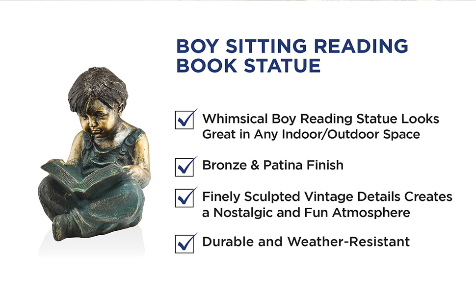 OUTDOOR STATUE: Whimsical boy reading statue looks great in your yard or garden, or placed on your deck or porch