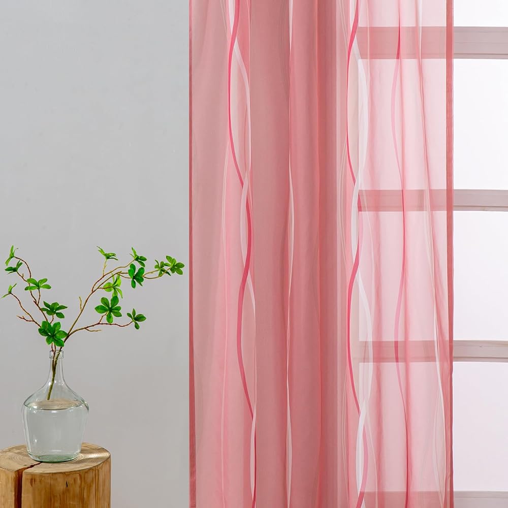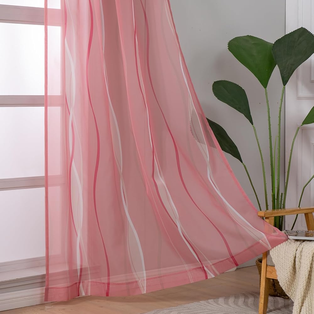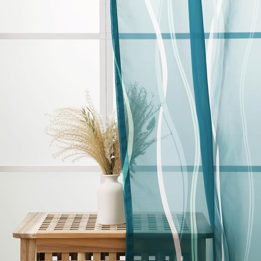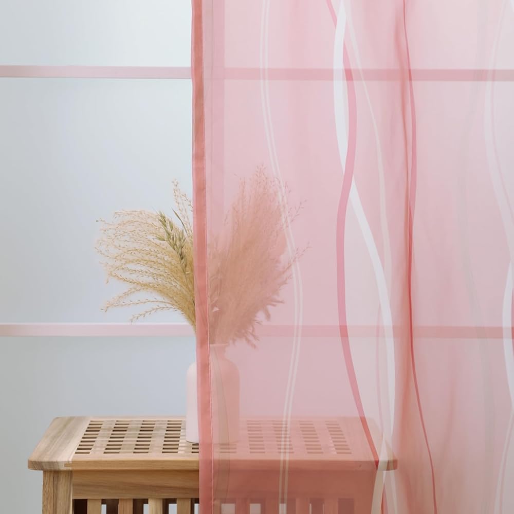 الشفافية: ستائر L.Z.E شفافة من الفوال مع أنماط متموجة تضفي إشراقة على منزلك بأسلوبها الجديد! إنها تسمح بدخول الكثير من ضوء الشمس، مما يسمح لك برؤية النافذة مع توفير بعض الخصوصية لك. لمزيد من الخصوصية في الليل، يمكنك إقرانها بستائر أو ستائر معتمة.