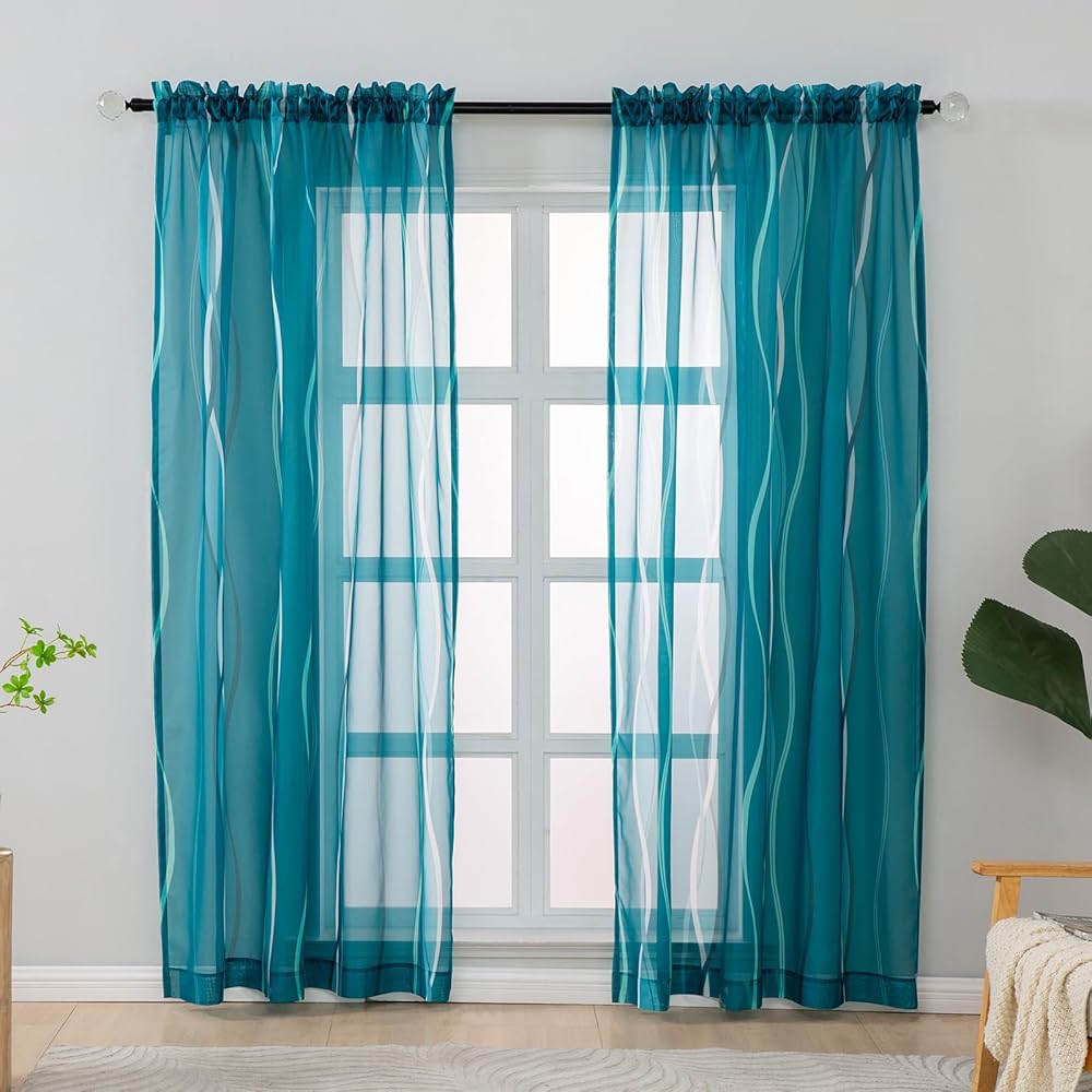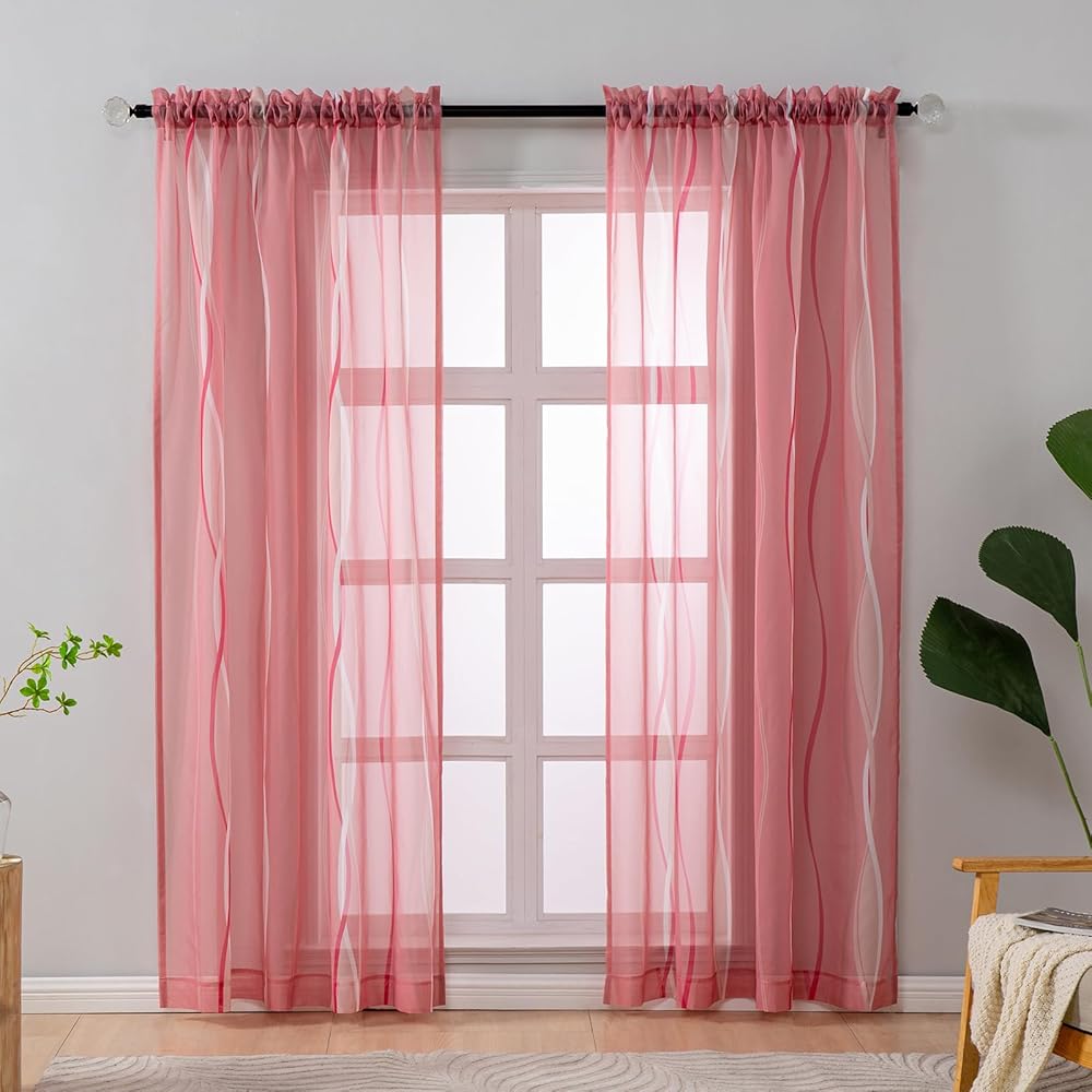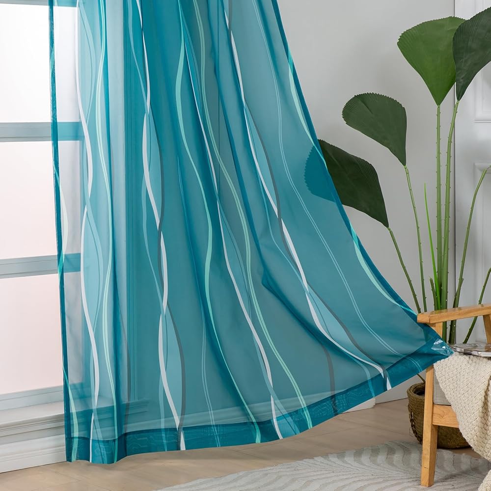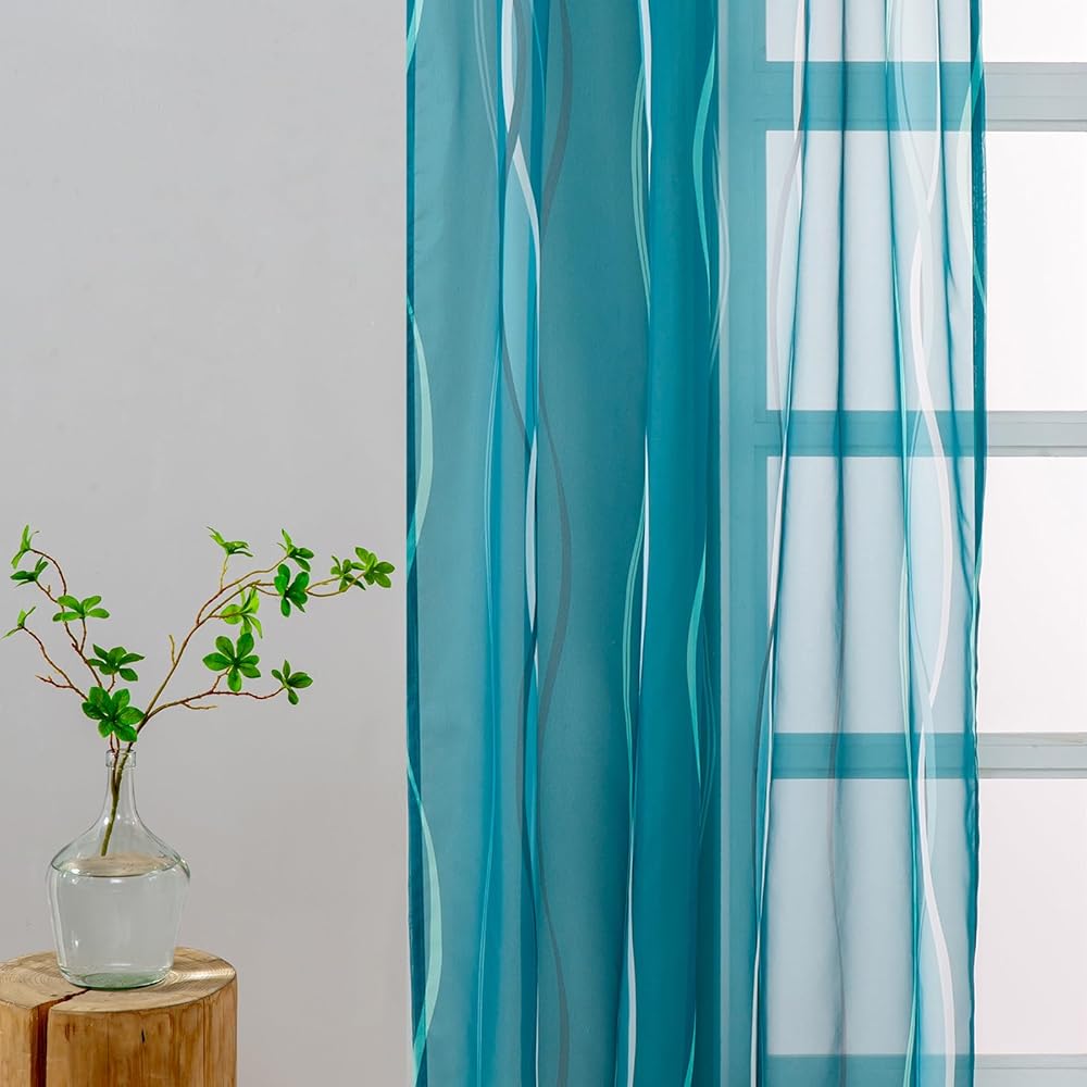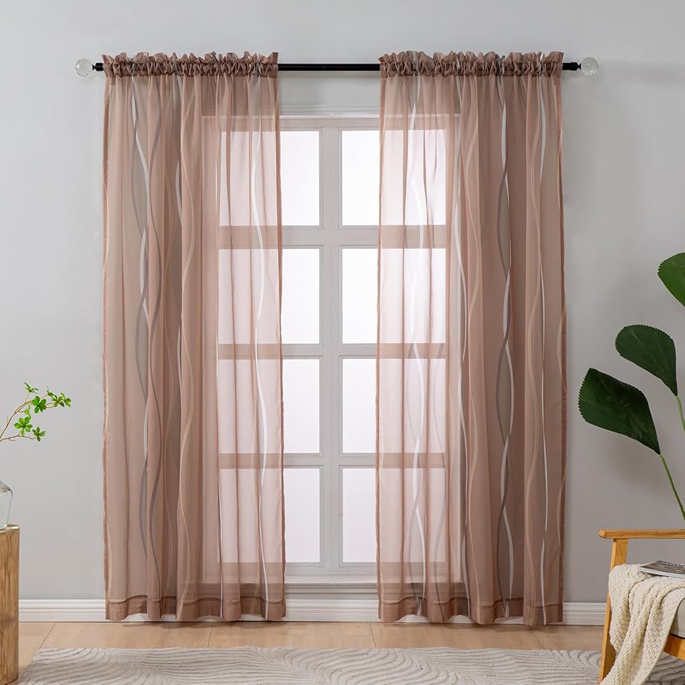 الشفافية: ستائر L.Z.E شفافة من الفوال مع أنماط متموجة تضفي إشراقة على منزلك بأسلوبها الجديد! إنها تسمح بدخول الكثير من ضوء الشمس، مما يسمح لك برؤية النافذة مع توفير بعض الخصوصية لك. لمزيد من الخصوصية في الليل، يمكنك إقرانها بستائر أو ستائر معتمة.