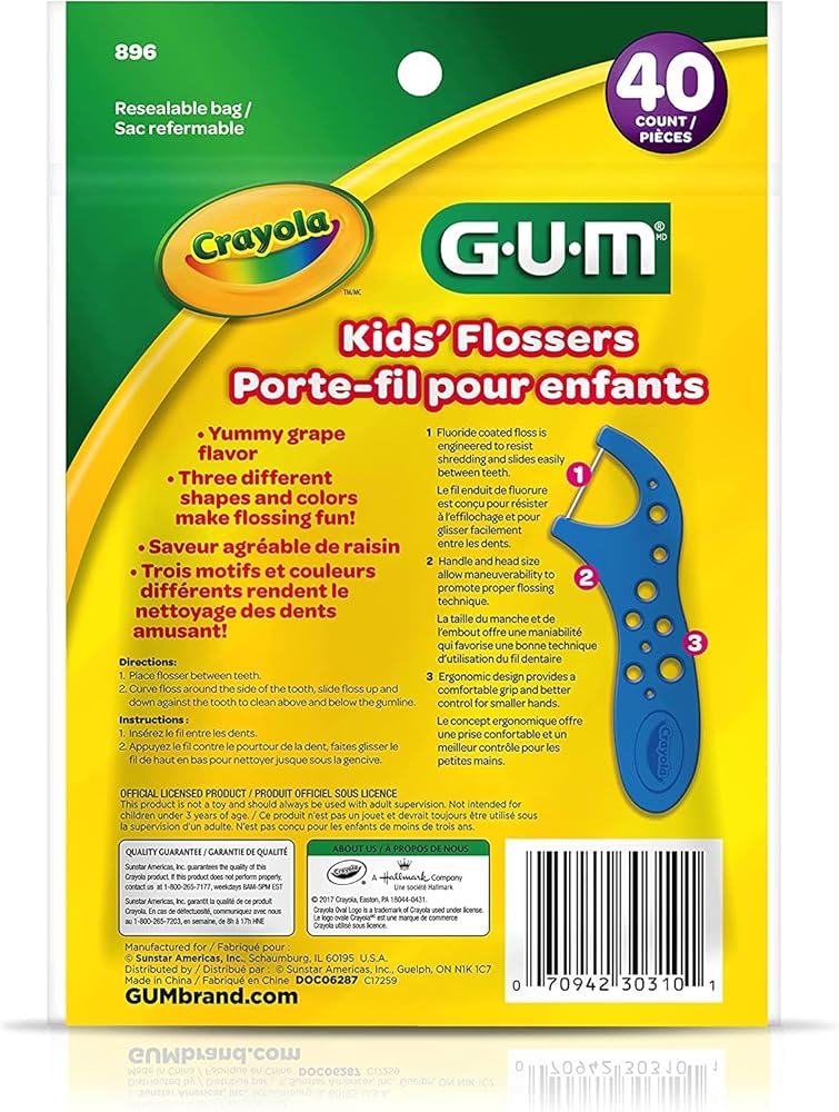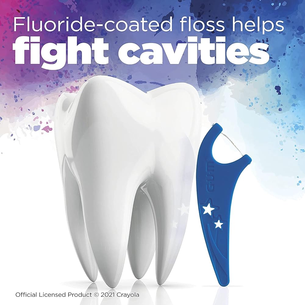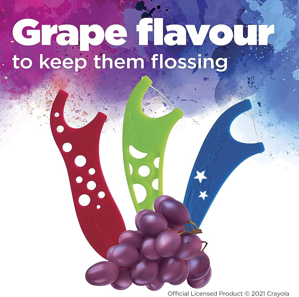 خيط تنظيف الأسنان GUM Crayola للأطفال، بالعنب، مطلي بالفلورايد، للأعمار من 3 سنوات فما فوق، 40 قطعة
