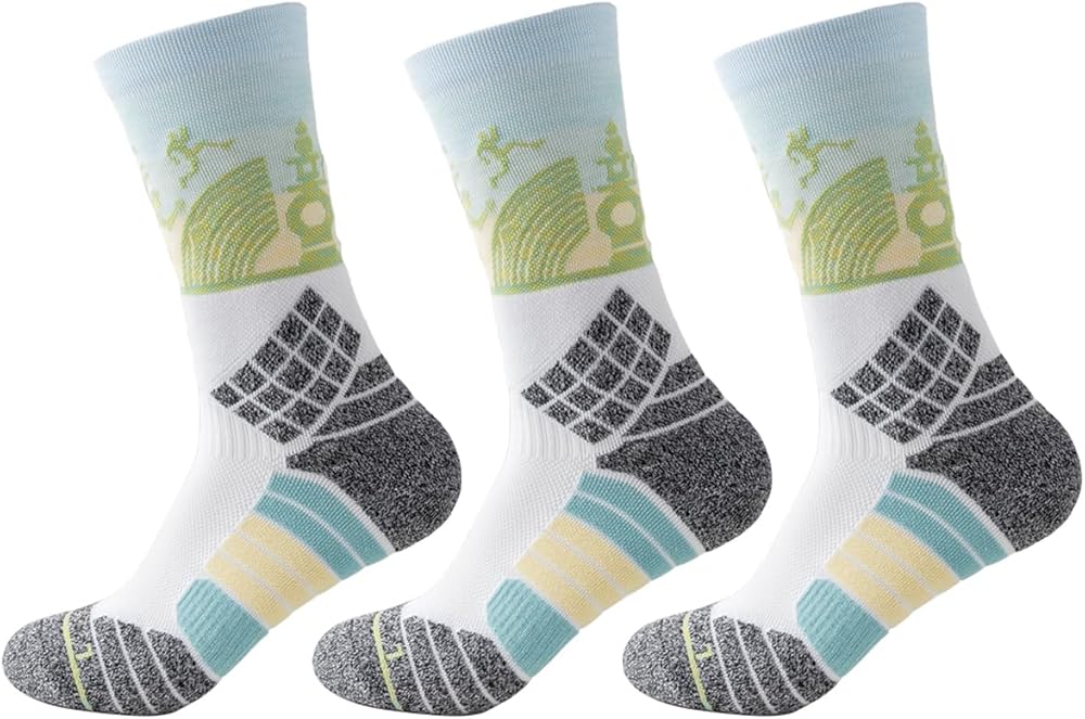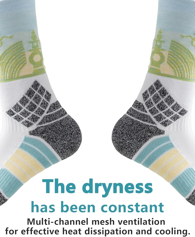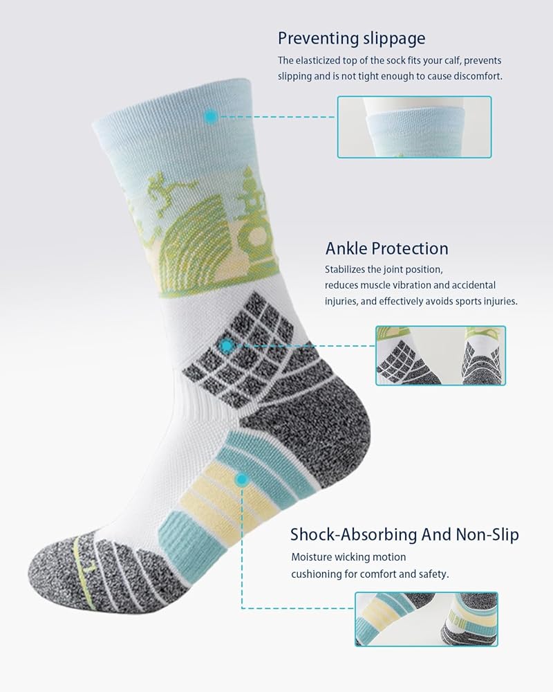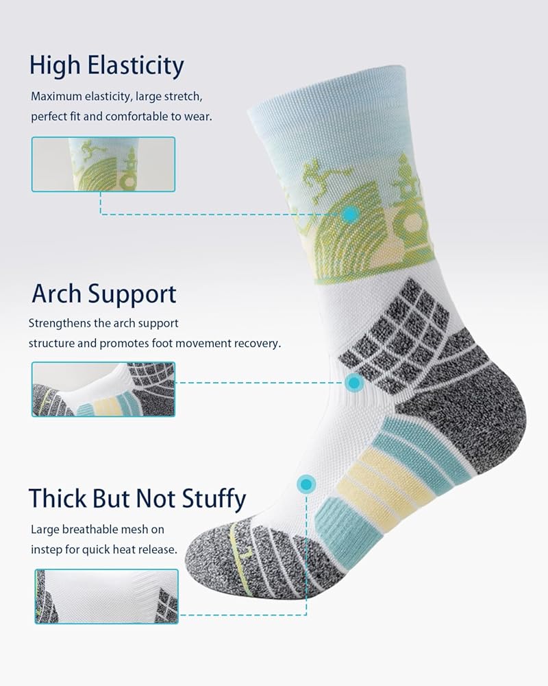 [تصميم احترافي]: جوارب الجري، تصميم كعب ثلاثي الأبعاد/نعل سميك، يميز بين القدم اليسرى واليمنى، أكثر راحة في الارتداء، أصابع القدم والكاحل السميكة يمكنها تجنب الإصابات الرياضية بشكل فعال، تصميم دعم القوس يعزز ملاءمة الضغط، مثالي مناسب لقدميك، ويمنحك راحة لا حصر لها!