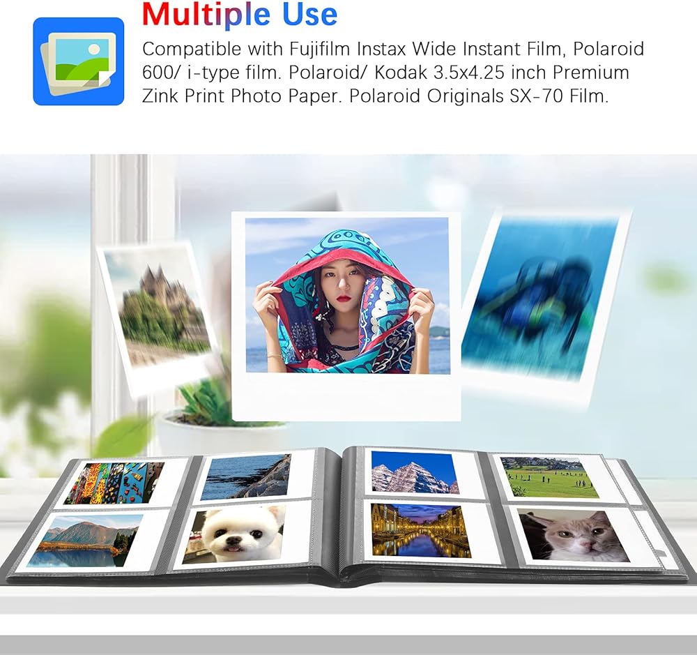 💗【نموذج قابل للتطبيق】- مناسب للصور التي تم التقاطها بواسطة كاميرا Fujifilm Instax Linkwide Wide 300 و200 و210، وكاميرا Polaroid Originals OneStep 2، وOneStep+، وكاميرا SX70، وأفلام الكاميرا الأصلية 600، وكاميرا Polaroid POP / Lap للطباعة الفورية. يناسب فيلم Fujifilm instax Wide Instant Film، Polaroid 600، i-type film، Polaroid / Kodak 3.5 × 4.25 بوصة.