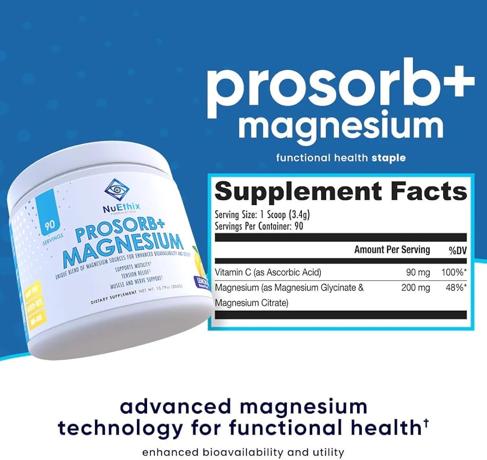 التوافر الحيوي المعزز: من المعروف أن بروسورب + المغنيسيوم يساعد في تحسين الحركة، وقد يساعد في تخفيف التوتر، ويساعد في دعم العضلات والأعصاب، ويساعد في دعم وظائف القلب والأوعية الدموية.