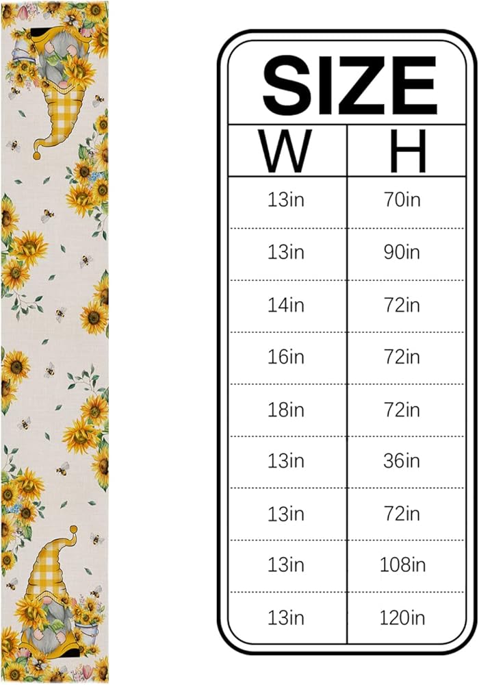SIZE: 13x90inches long, appropriate for round, square or rectangular tables that can seat 4-6 people.