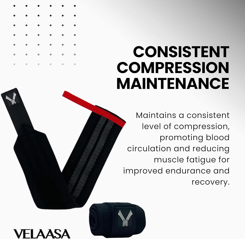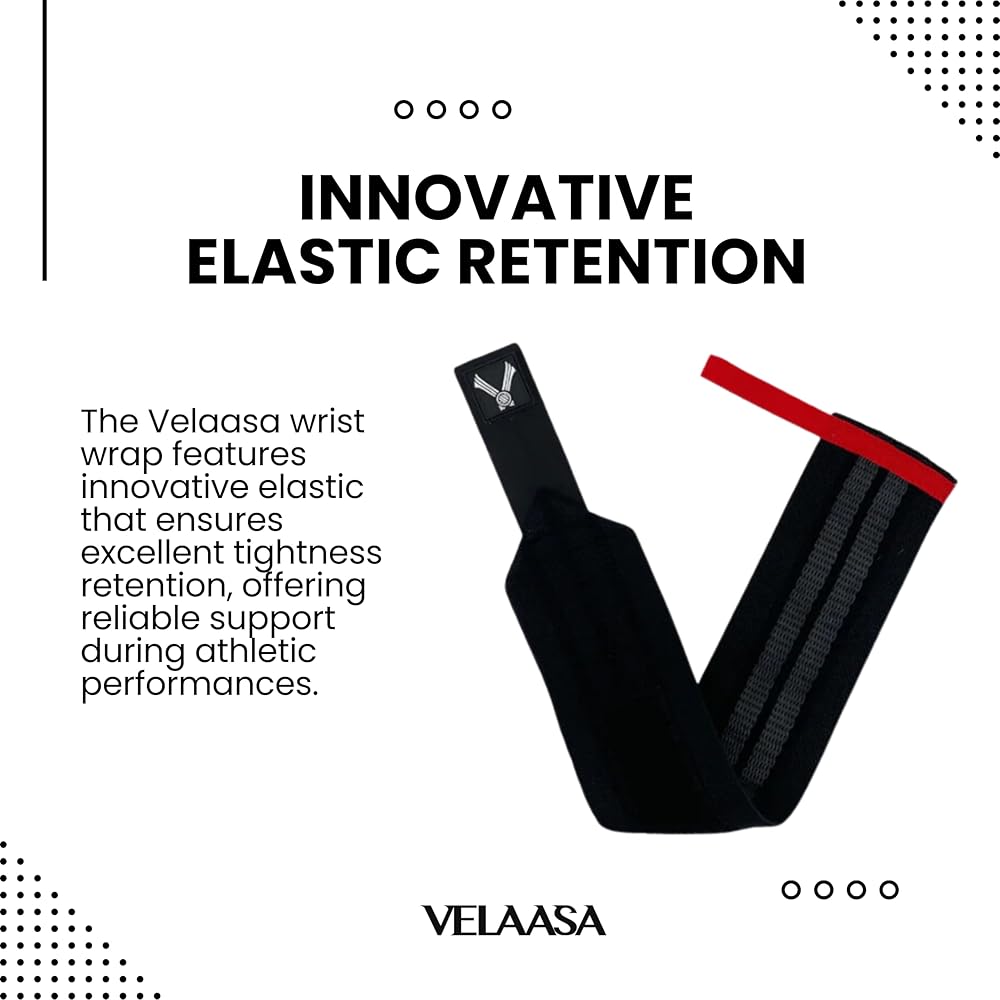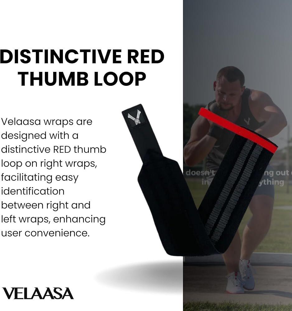 The newly designed Velaasa wrist wrap features innovative elastic that provides excellent wrap tightness retention. A convenient thumb loop allows for easy fitting and adjustments between reps. Another new design feature that sets Velaasa wraps apart is the distinctive RED thumb loop on right wraps for easy identification between right and left wraps. Quality materials provide just the right amount of stiffness in this 18" length wrist wrap and with no slippage once secured. Sold individually for shot putting or in right/left pairs for weightlifting.