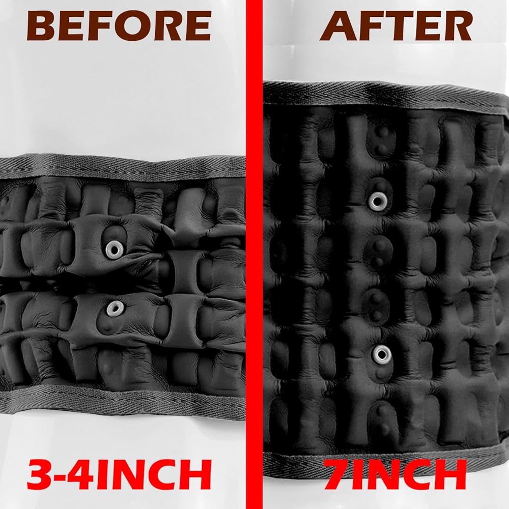 Decompression Design - The waist belt is designed to be inflated using a manual air pump, allowing you to adjust the firmness and fit to your comfort level. The decompression nature of the belt ensures that it conforms to the shape of your waist, providing a secure and personalized fit.