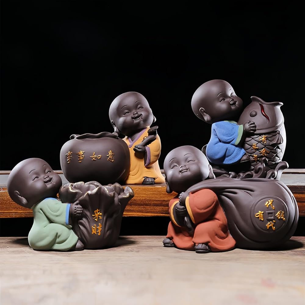 Outstanding Design: The shape and posture of the cute buddha vary from designer to designer, it is round, with a happy and plump body, wearing a happy smile on their faces. It sit or lie on the tea table, symbolizing the Buddha's embrace of the world.