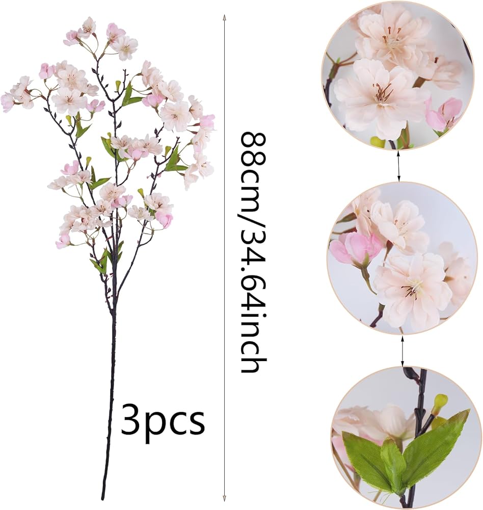 3 Pcs Artificial Flowers Cherry Blossom Branches