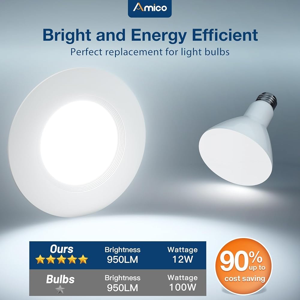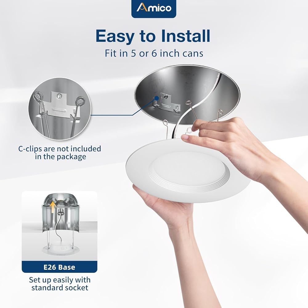 تركيب بسيط: مصابيح LED مجوفة مقاس 6 بوصات تحتوي على قاعدة E26 عالمية مما يجعل التثبيت سهلاً مثل المصباح، ويمكن تركيبها بشكل مستقل بدون كهربائي، وسوف يستغرق الأمر 3 دقائق فقط لتركيب واحدة. يوفر عليك الوقت والمال.