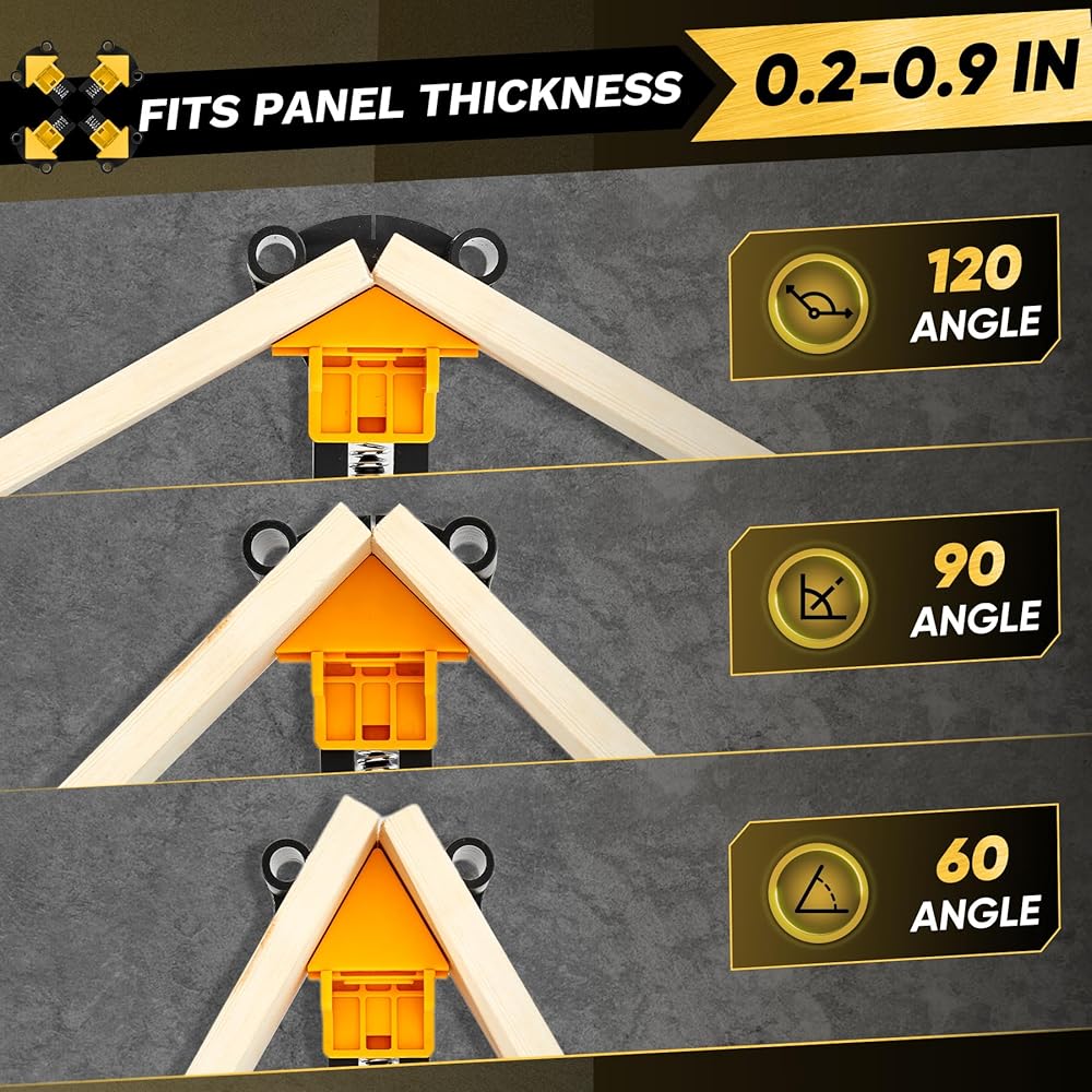 • 🗜مجموعة F Clamp & Angle Clamps: تحتوي المجموعة على قطعتين 6 بوصات مشابك شريطية و4 قطع مشابك زاوية 90 درجة. يمكن ضبط المشابك 6 بوصات على موزعات بأحجام تصل إلى 11-9/64 بوصة وألواح زاوية المشبك الملائمة مع سمك 0.2-0.9 بوصة قم بتثبيت لوحين أو لوح زجاجي بزاوية 60 درجة و90 درجة و120 درجة.