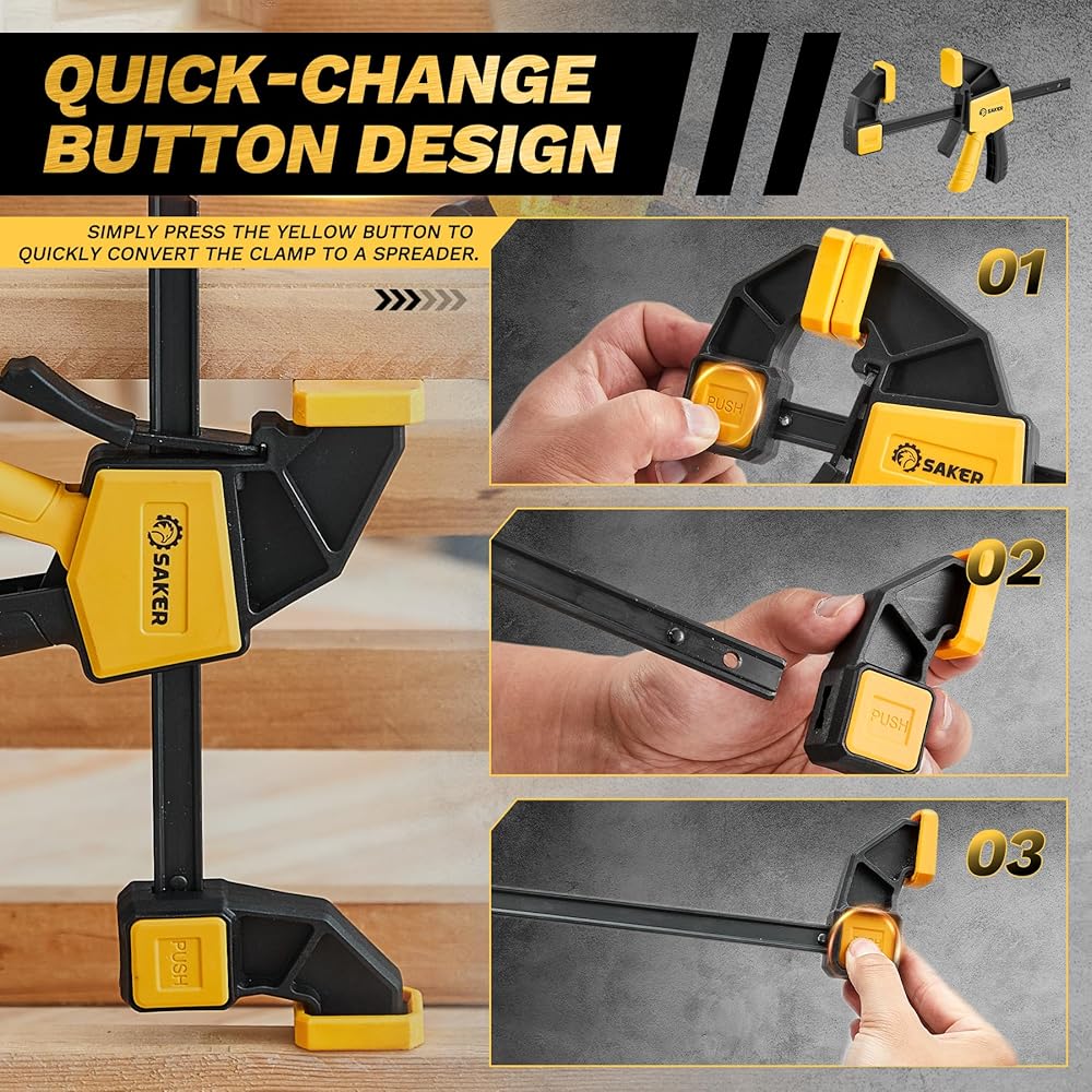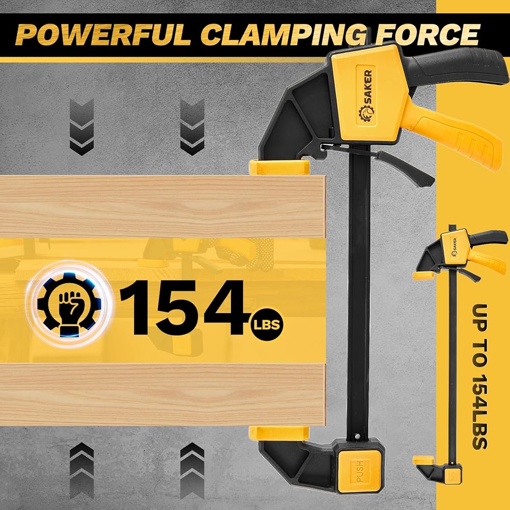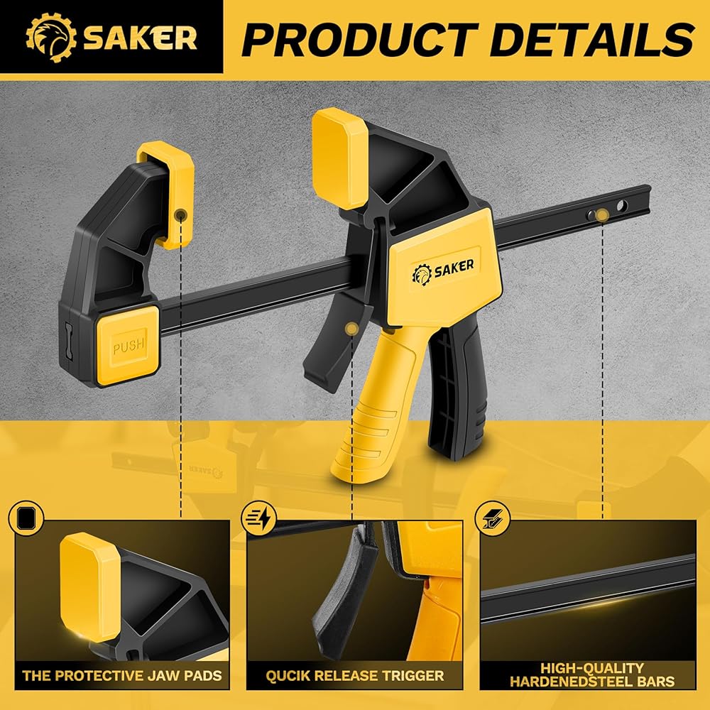 • 🗜استخدام واسع: مشابك Saker Bar Clamps مثالية لتجميع الأعمال الخشبية ومشاريع اللصق وغيرها من تطبيقات التثبيت التي تصنعها بنفسك.