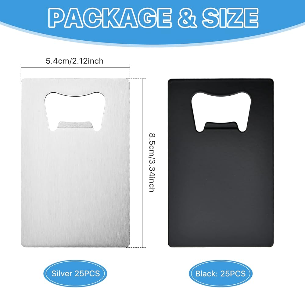 عبوة VALUR-- سوف تحصل على 50 قطعة فتاحة زجاجات لبطاقات الائتمان (25 قطعة باللون الفضي والأسود)، إذا كان لديك أي أسئلة حول منتجنا، فلا تتردد في الاتصال بنا، وسوف نبذل قصارى جهدنا لتلبية احتياجاتك.