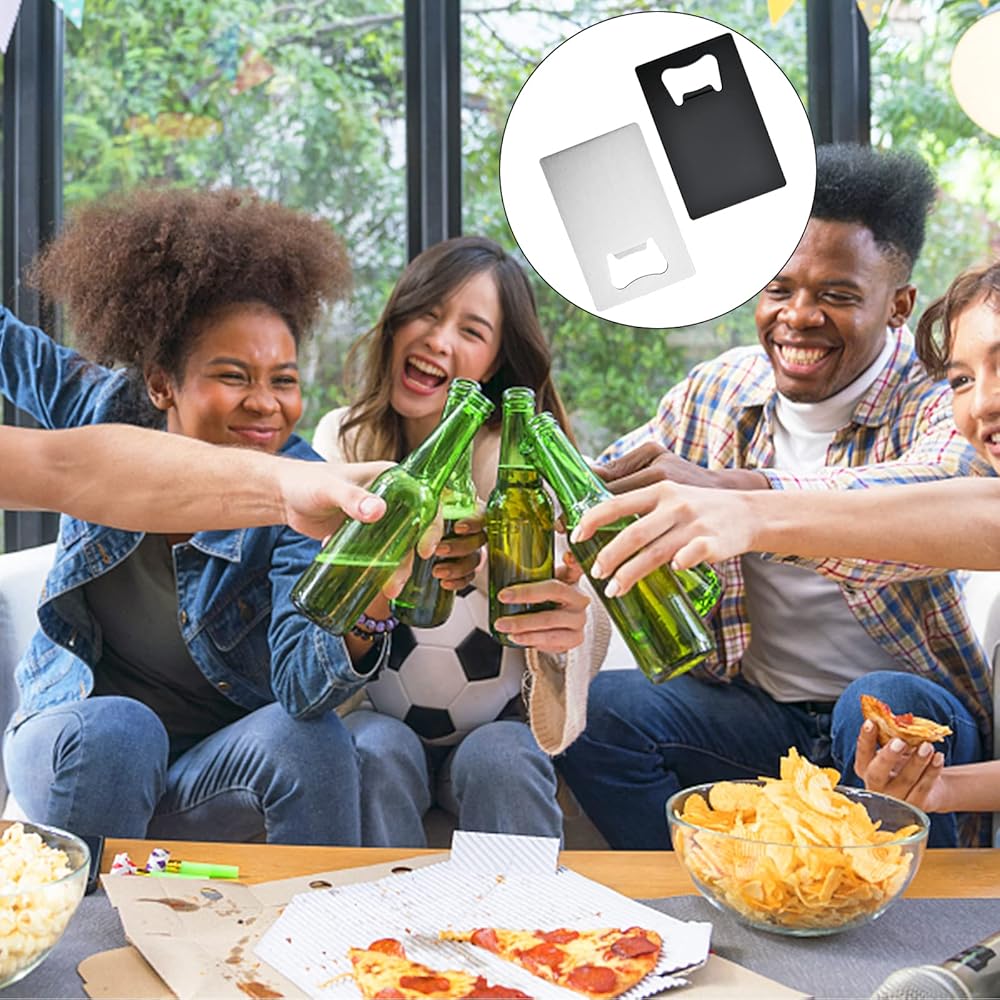 تصميم مظهر بطاقة الائتمان - حجم كل فتاحة زجاجات: 3.34 بوصة × 2.12 بوصة (طول × عرض)، كل منها تزن حوالي 42 جرام، يمكن تحميلها بسلاسة في محفظتك أو جيبك.