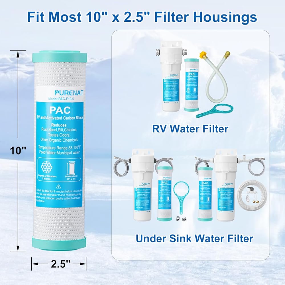 【عمر خدمة طويل وتكلفة استبدال أقل】: يستخدم الفلتر المركب مقاس 10 بوصة مادة فلتر أكثر من الفلتر البديل المتكامل (غلاف بلاستيكي وكربون مفلتر في وحدة واحدة)، المادة الأساسية هي الكربون المنشط بقشرة جوز الهند (شهادة NSF 42)؛ لذا فإن مركبنا الفلتر ذو عمر افتراضي طويل للغاية. أقل من $15.99 قم بشراء الفلتر المركب الخاص بنا لكل بديل، والأمر الأكثر إثارة للدهشة هو أن غطاء فلتر المياه الخاص بنا مناسب للفلتر القياسي مقاس 10 بوصات، لذلك من الأسهل العثور على الفلتر البديل وأقل تكلفة.