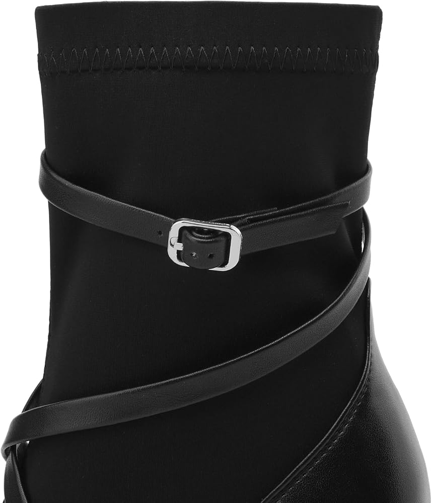 حزام كاحل قابل للتعديل: جزء علوي من القماش المرن مع تصميم أشرطة متقاطعة، هي نقاط محورية للتصميم الخالد، ونعل داخلي مبطن ناعم ونعل خارجي مطاطي مضاد للانزلاق يبقيك أنيقًا وساحرًا في جميع الأوقات.