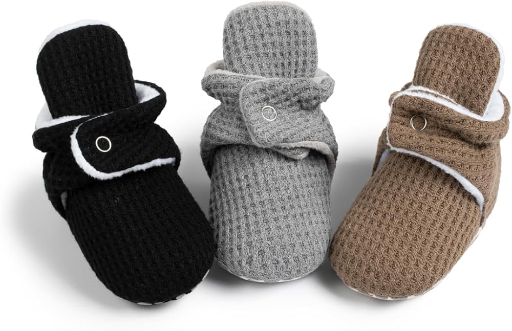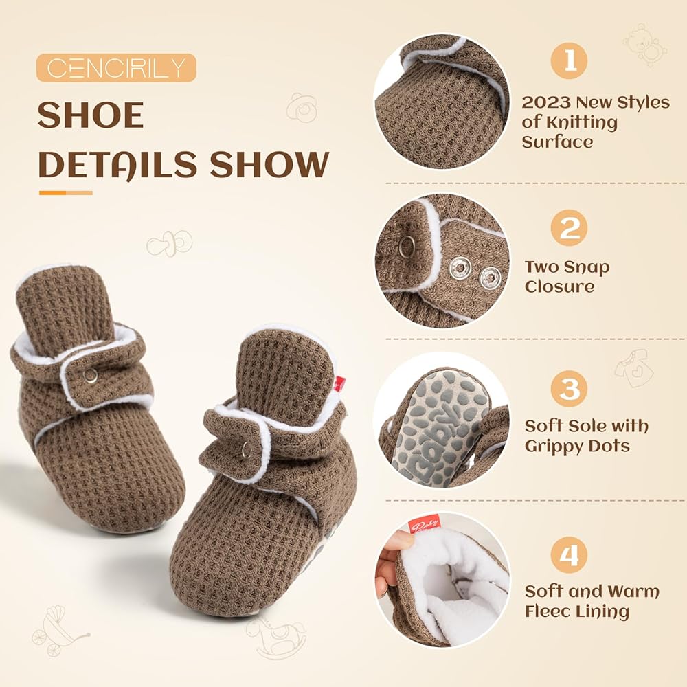 ☆【سهل الارتداء】تصميم من قطعة واحدة مزود بخطاف وحلقة أو مشبك يجعل الارتداء والإزالة مريحًا. تبقى أحذية الكاحل حتى أثناء قيام الطفل بالركل ومحاولة الزحف. تعتبر أحذية الأطفال هذه وسيلة مثالية للسعادة بين الجوارب والأحذية.