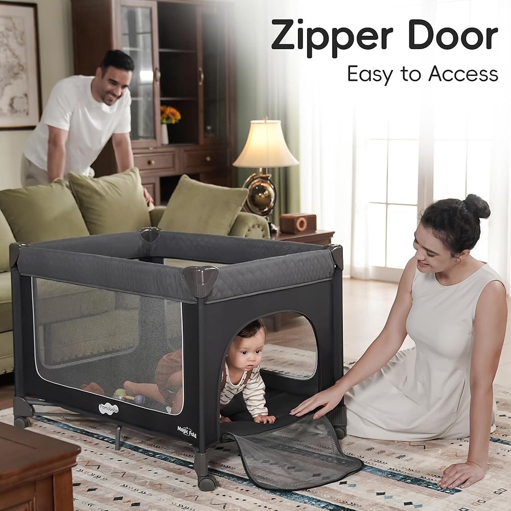 【خطوة واحدة للفتح والطي】يمكن فتح لعبة Magic Fold Playard وطيها بسرعة في ثانيتين. إنها أحدث التقنيات - Magic Fold، بخطوة واحدة فقط! ما عليك سوى الضغط للأسفل بيد واحدة لفتح ساحة اللعب، والسحب للأعلى بيد واحدة لطي ساحة اللعب.