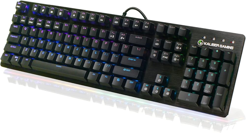 Perfect Keyboard for Work and Play Kaliber Gaming by IOGEAR HVER STEALTH Gaming Keyboard improves on the original RGB mechanical HVER series with updated cosmetic design featuring a rounded and brushed aluminum top plate, 360-degree edge lighting and the namesake hover-style RGB back-lit key. The enhanced brown boxed-style mechanical switches offer accurate, tactile feel while also delivering a quieter but still pronounced keystroke that confirms every actuation. The keyboard also features N-key rollover anti-ghosting technology so you can enjoy reliable gaming without worrying about a keystroke not registering. The HVER STEALTH also features Kaliber Gaming advanced software allowing macro programming and lighting control for a truly customizable experience.