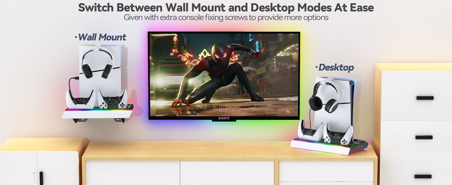 • 【يدعم أوضاع التثبيت على الحائط وسطح المكتب】يوفر حامل الحائط على الرف PS5 خيارات وضع متعددة يمكنها التبديل بين أوضاع التثبيت على الحائط وأوضاع سطح المكتب بسهولة عن طريق برغي تثبيت واحد. قم ببرغي لوضع التثبيت على الحائط أثناء فك المسمار لأوضاع سطح المكتب. يأتي جدار PS5 النحيف مزودًا بصندوق تخزين شفاف يمكنه تخزين الملحقات الصغيرة في حالة فقدانها.