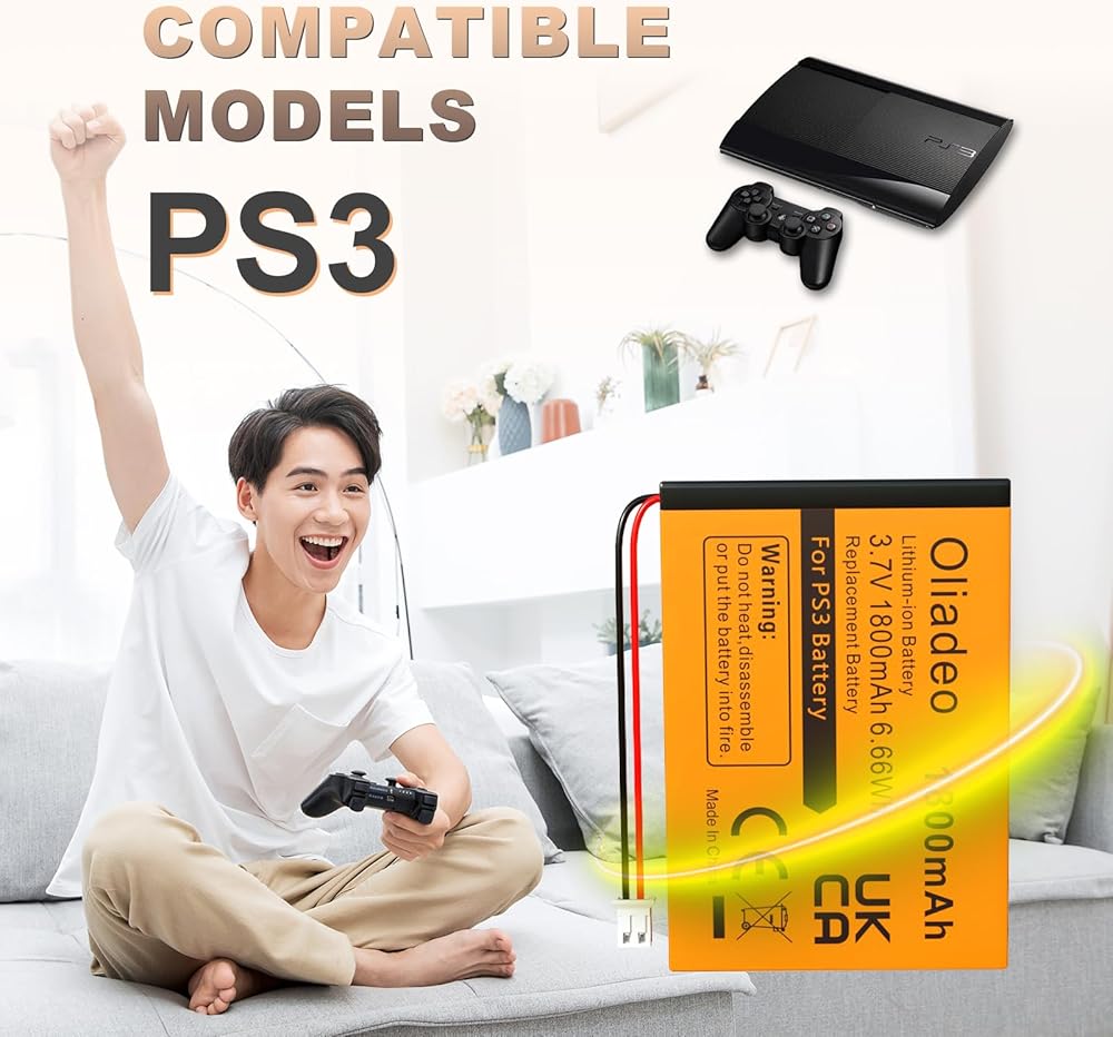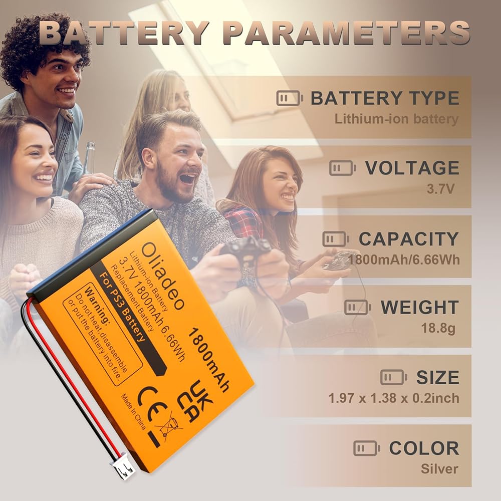 بطارية وحدة التحكم PS3: متوافقة مع بطارية ترقية وحدة التحكم اللاسلكية Sony Playstation 3 PS3 Sixaxis Dualshock 3، رقم الجزء: LIP1359، LIP1472، LIP1859، CECHZC2E، CECHZC2U.