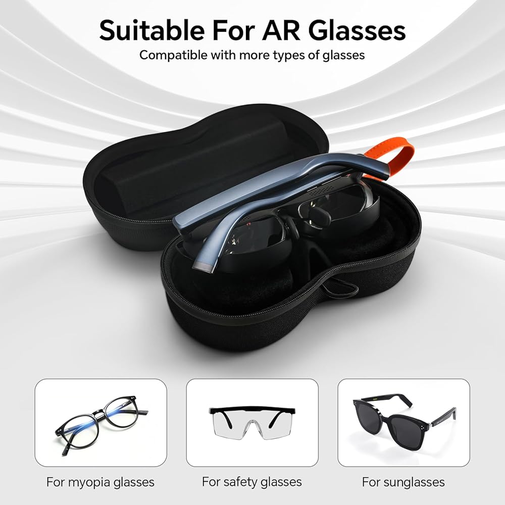 حقيبة حمل النظارات الذكية RCstyle متوافقة مع نظارات XREAL Air 2 Pro AR / النظارات الشمسية / نظارات قصر النظر البديلة المحمولة ذات الغلاف الصلب حقيبة سفر واقية