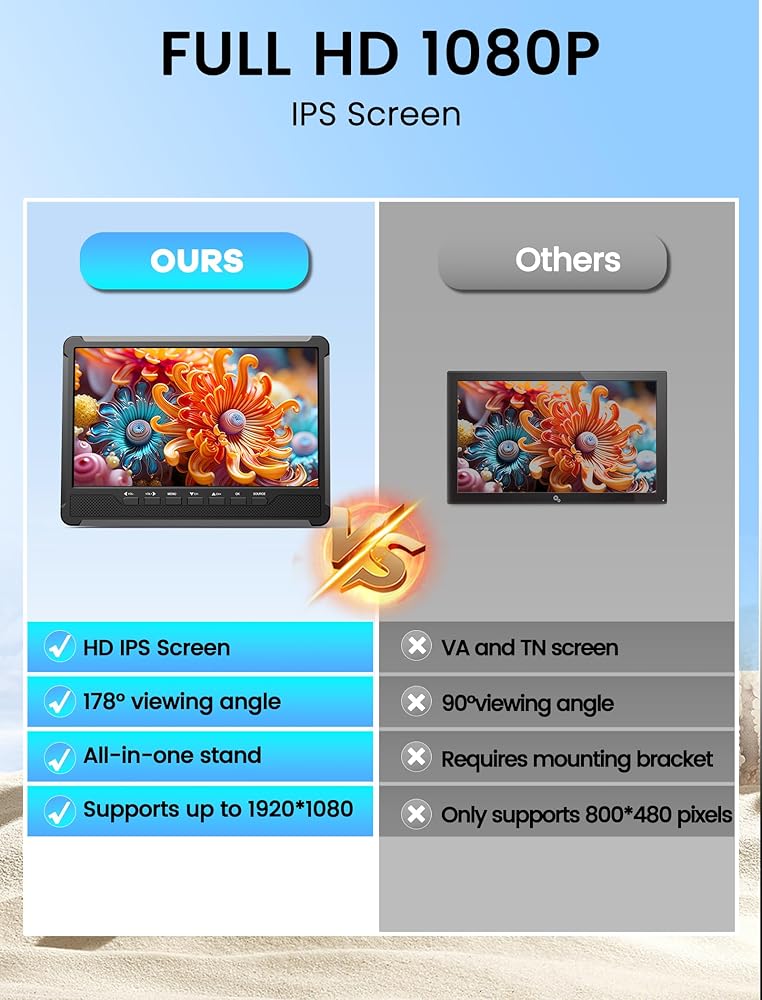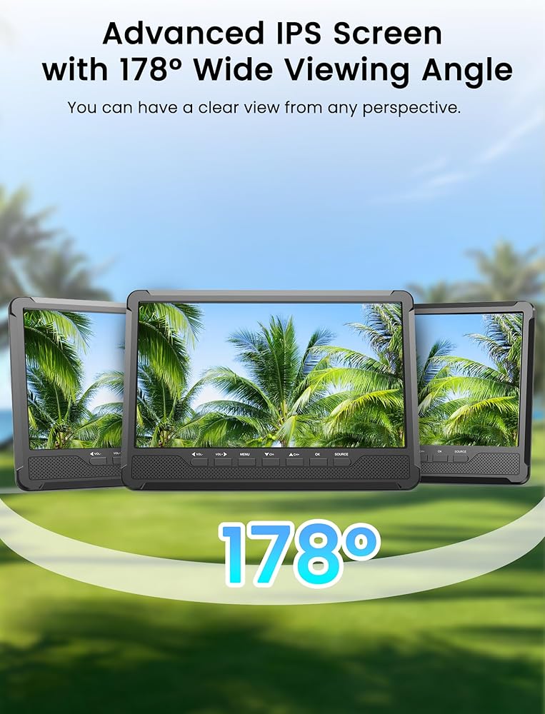 • ☀ تلفزيون محمول بشاشة IPS عالية الدقة 1080 بيكسل انغمس في صورة حية ودقيقة مع شاشة IPS بدقة 1920 × 1080. استمتع بزاوية عرض واسعة تبلغ 178 درجة لتجربة بصرية محسنة. يزن التلفزيون الصغير 1.59 رطلاً فقط ويمكن تخزينه بسهولة في حقيبة محمولة للسفر أو العمل أو النقل.