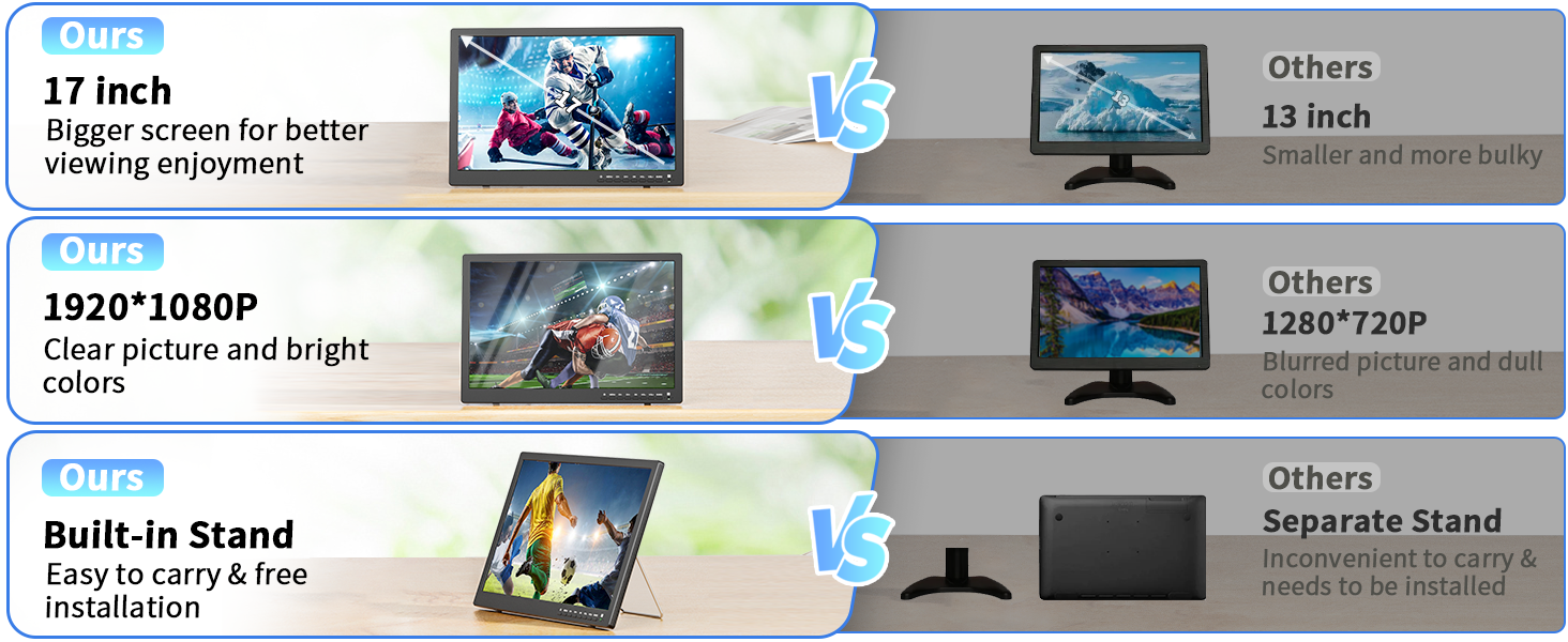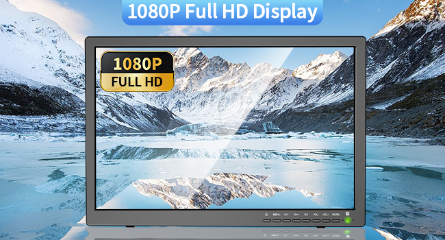 【شاشة عالية الدقة بالكامل و17 بوصة أكبر】يدعم تلفزيون HDTV عريض مقاس 17 بوصة من DESOBRY ما يصل إلى 1080 بكسل مع موالف ATSC الرقمي، ما عليك سوى توصيل الهوائي المرفق للحصول على إشارة لمشاهدة القنوات التلفزيونية والعروض بحرية. (يمكنك أيضًا استخدام الهوائي الخارجي الخاص بك في المنزل ، ستكون الإشارة أفضل) توفر لك مكبرات الصوت الاستريو المزدوجة المدمجة في تلفزيوننا الصغير صوت استريو واضحًا وعاليًا.