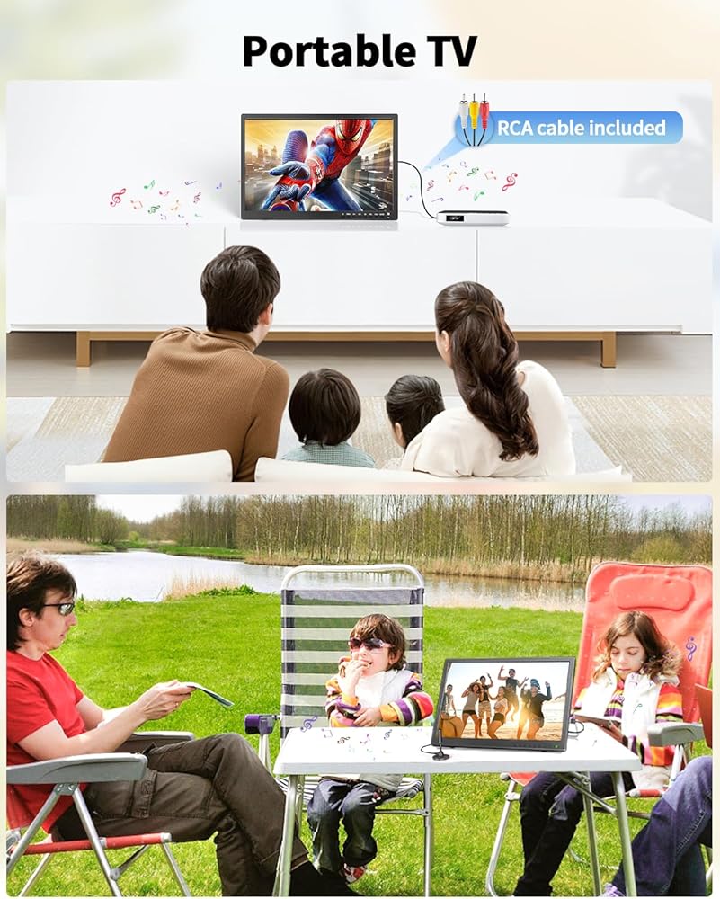 【مدخل HDMI ومدخل AV】تلفزيون DESOBRY الصغير ليس مجرد تلفزيون محمول، ولكنه أيضًا شاشة محمولة تدعم إدخال HDMI ومدخل AV. يمكنه مزامنة ما يصل إلى 1080 بكسل من الفيديو والصوت من الهواتف أو أجهزة الكمبيوتر أو Raspberry Pi أو Xbox أو Kindle Fire وما إلى ذلك. مع وظيفة AV In، يمكنك استخدام كابل RCA المرفق لتوصيل مشغل DVD الخاص بك بهذا التلفزيون الصغير للاستمتاع بالأفلام.