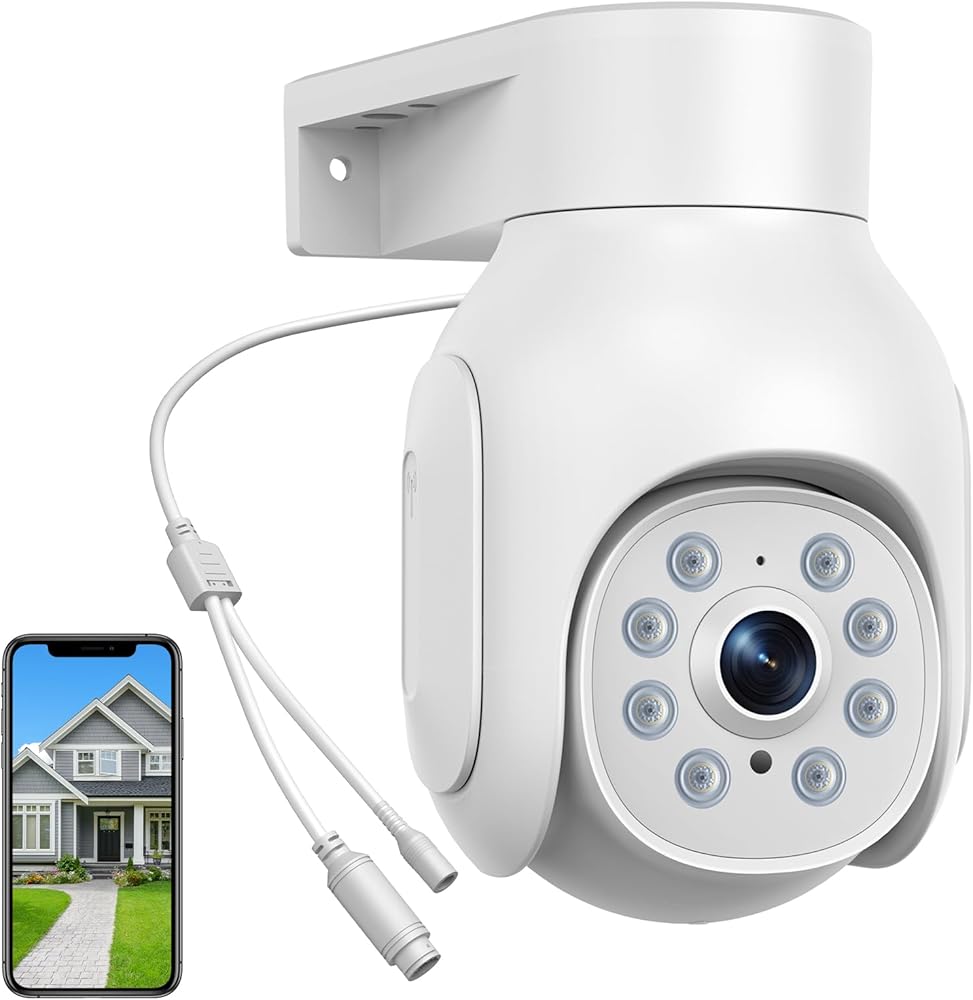 CAMCAMP Wired PTZ Home Security Camera, WiFi Dome Surveillance Camera for Home Security Indoor/Outdoor, 2K Pan Tilt Security Camera, Support Motion Tracking, PIR Sensor, Motion Record, Color Night Vision