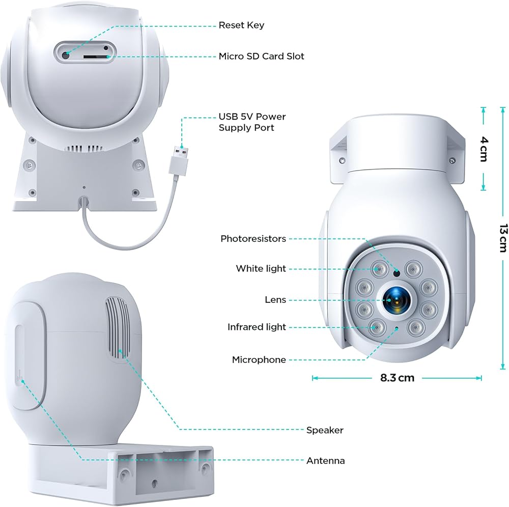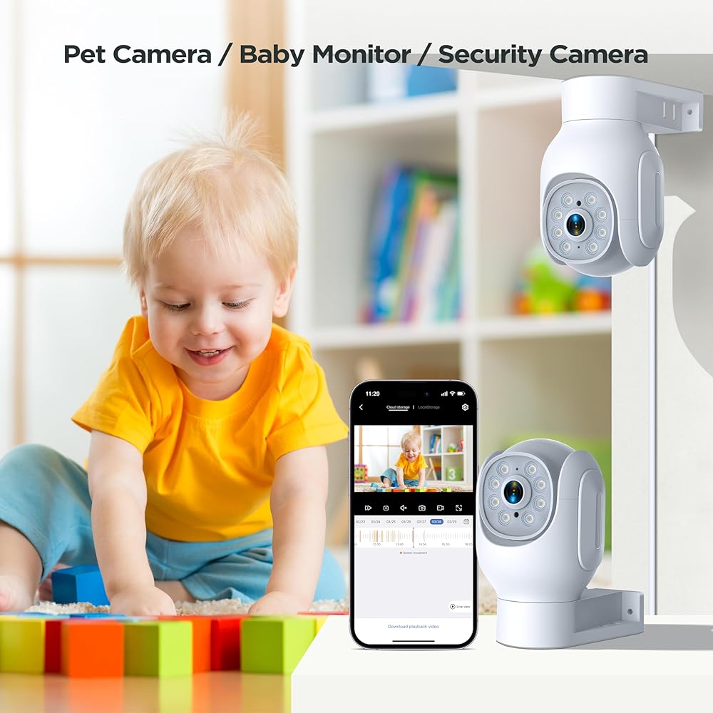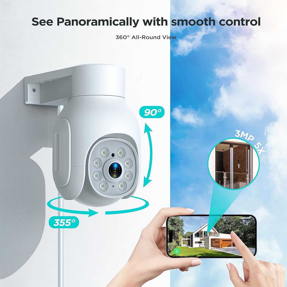 【360°view & 5X Auto Zoom】Outside Cameras for home security With 360° PTZ control, allowing you to adjust the viewing angle of your indoor camera for comprehensive coverage. And 5X hybrid zoom ensures precise monitoring, offering a complete view of your home's security