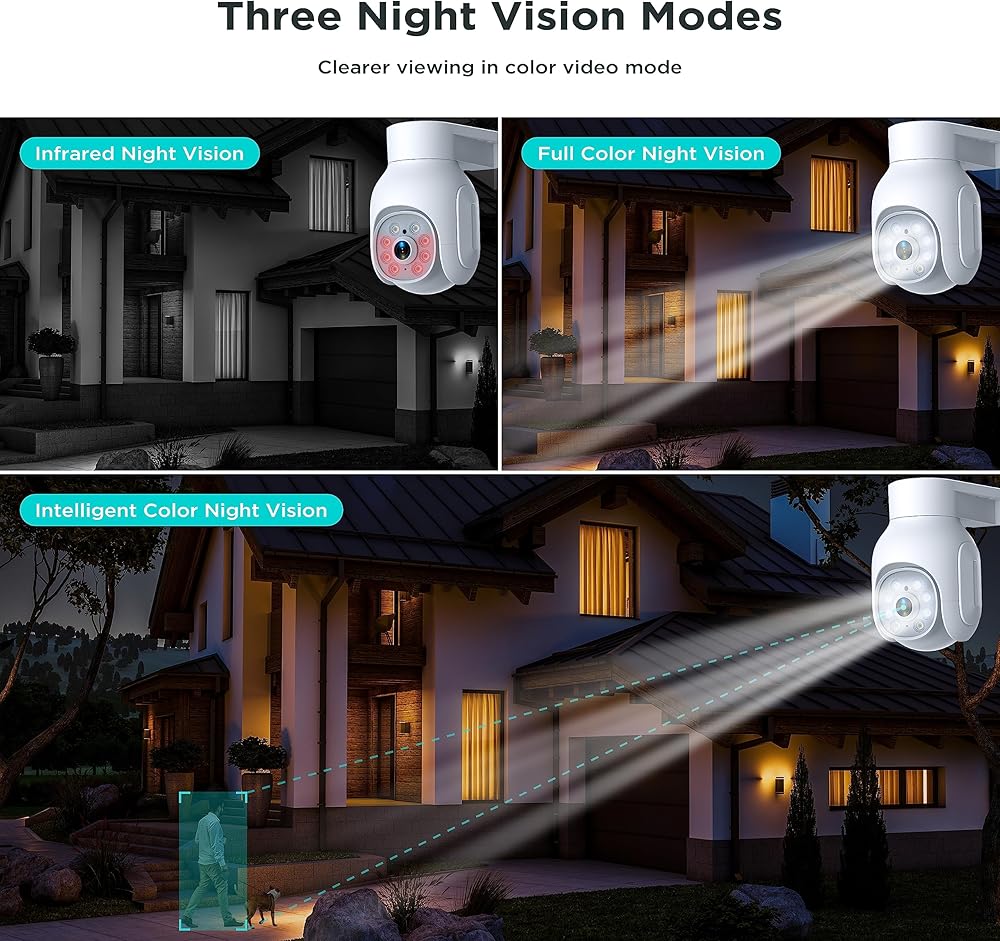 【3MP HD & Color Night Vision】Outside Cameras for home security With 3MP HD(2304x1296P) , allowing you to adjust the viewing angle of your indoor camera for comprehensive coverage. Plus, our color night vision surpasses traditional night vision, ensuring you can monitor your home day and night with enhanced clarity