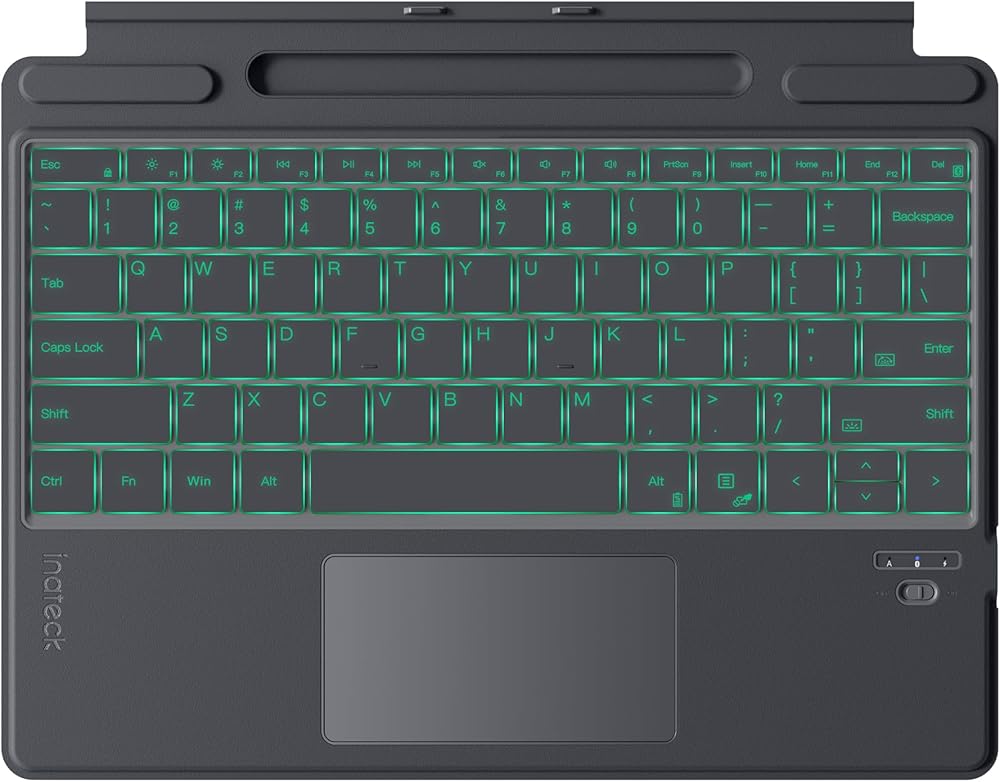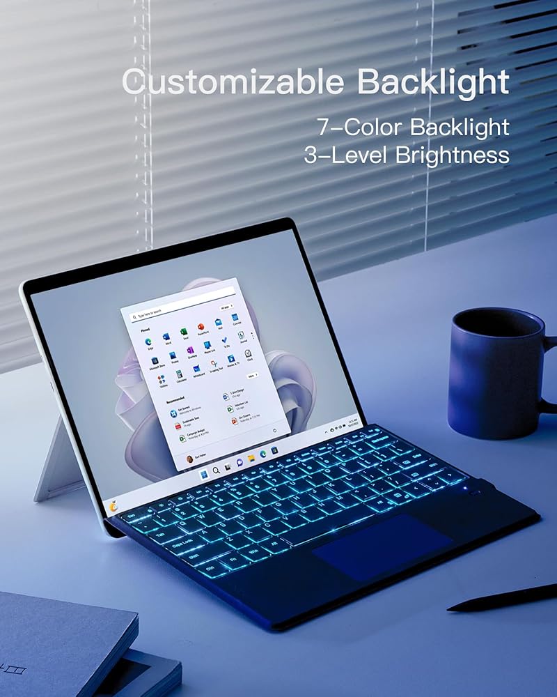لوحة مفاتيح Inateck Surface Pro 9 مع لوحة لمس، لوحة مفاتيح بلوتوث بإضاءة خلفية 7 ألوان مع حامل قلم، متوافقة مع Surface Pro 9/8/X/10، KB05113