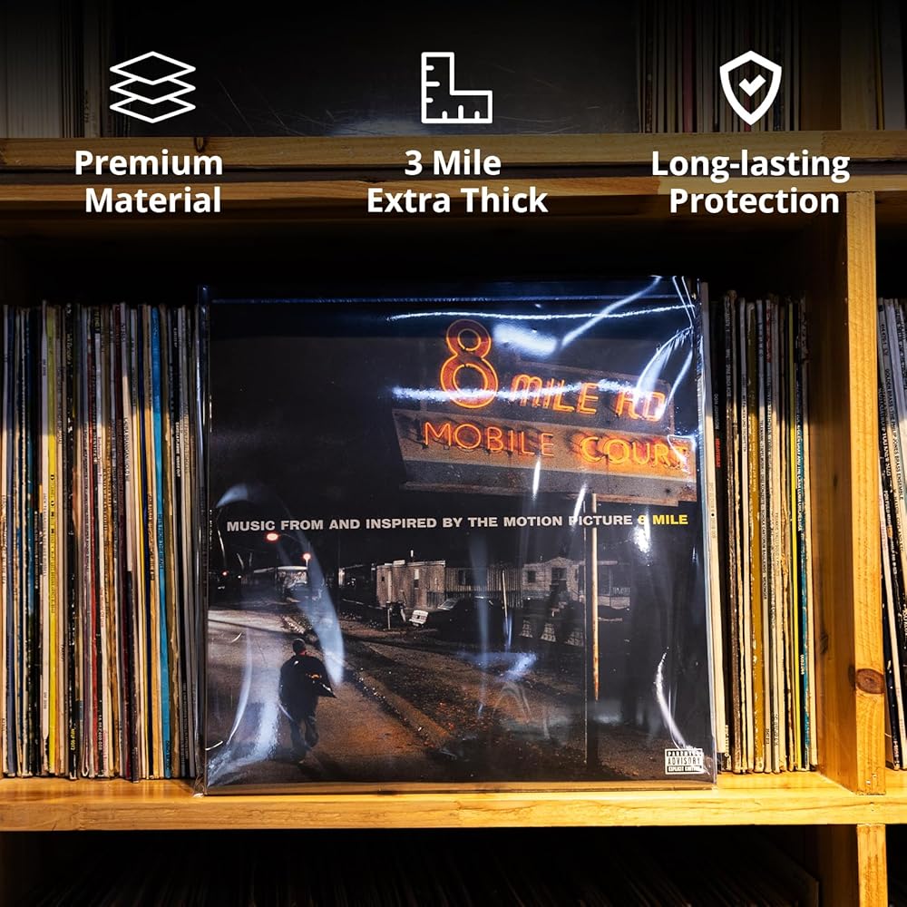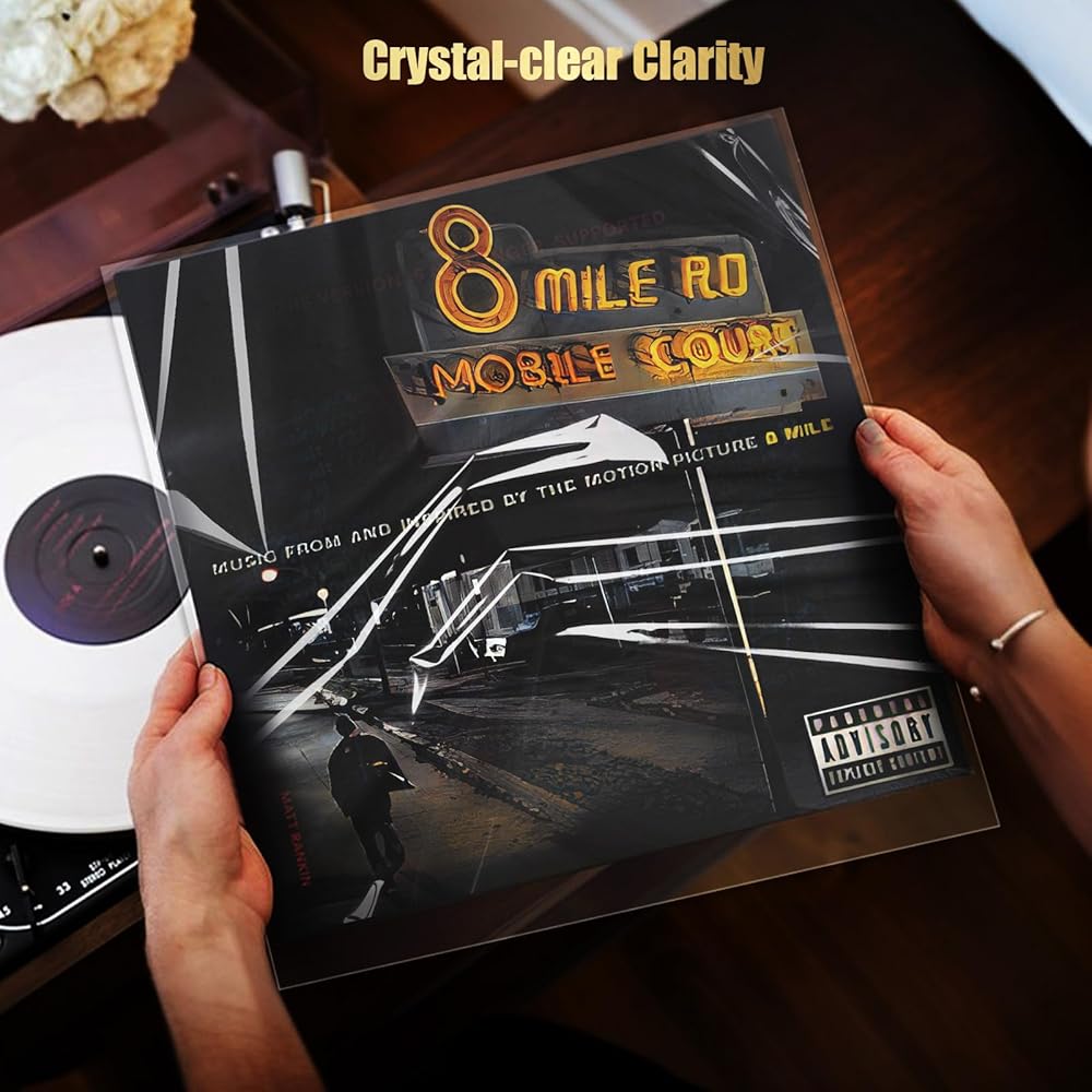 الحماية القصوى: توفر أغلفة تسجيل الفينيل POCFOINY حماية فائقة لألبومات الفينيل الخاصة بك، وتحميها من الأوساخ والغبار والخدوش والبقع السائلة والعناصر الأخرى التي يمكن أن تلحق الضرر بحالتها. تأمين مجموعة التسجيلات القيمة الخاصة بك لسنوات قادمة، كل ذلك مع الحفاظ على جودة الصوت وحالته الأصلية.