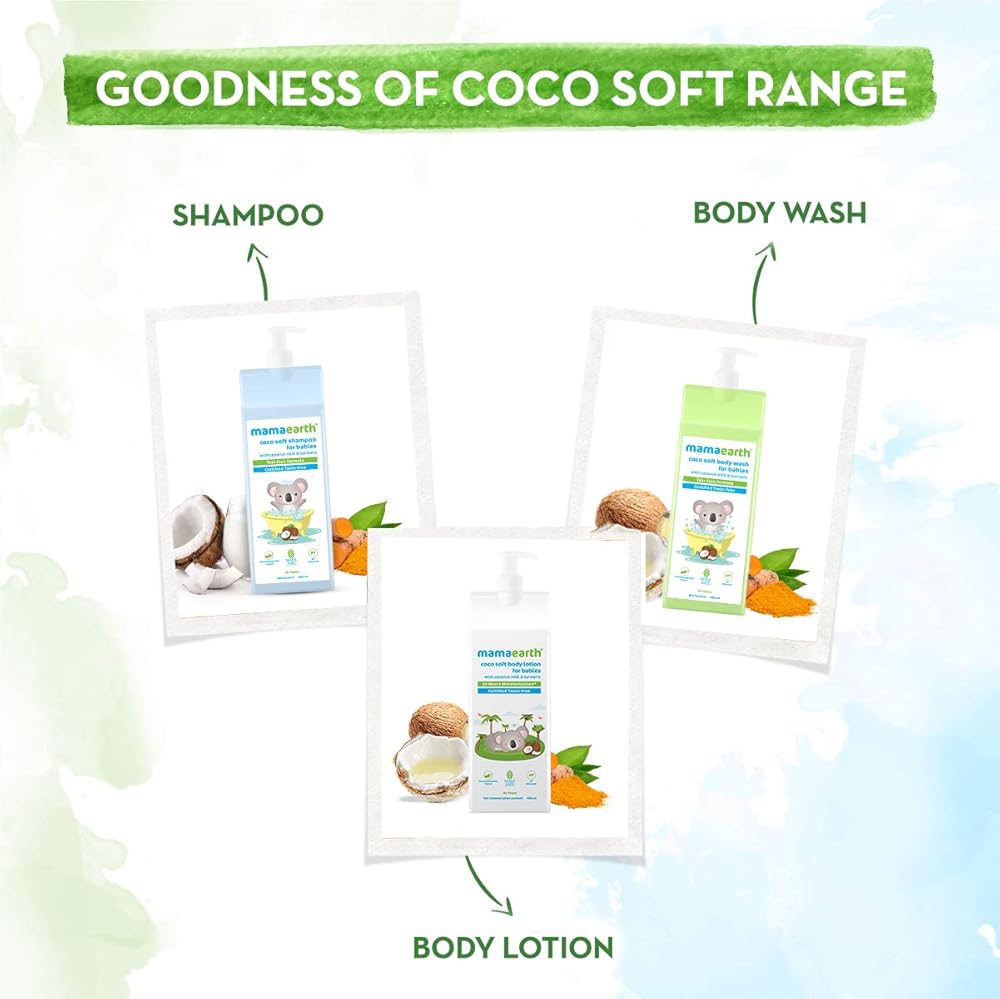 - MAMAEARTH Baby Coco Soft Shampoo | Gentle Cleansing with Coconut Milk & Turmeric | Nourishing for Delicate Scalp | Tear-Free SLS & Paraben-Free | 13.53 Fl Oz (400ml)